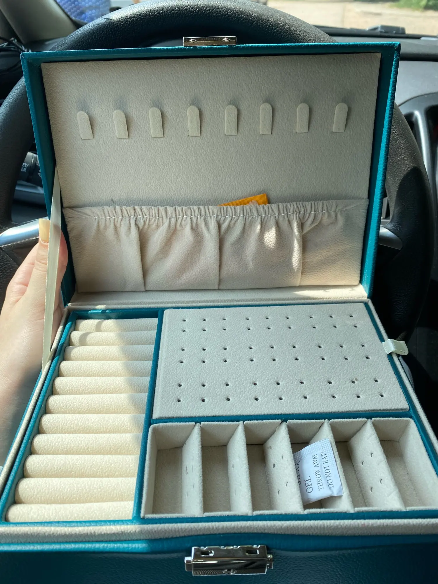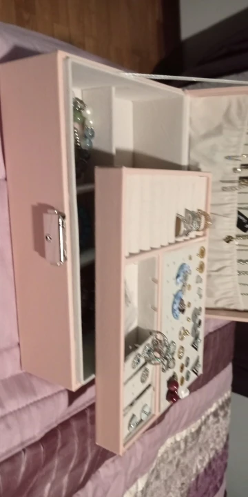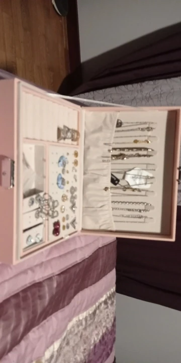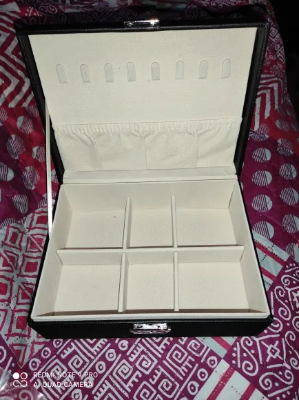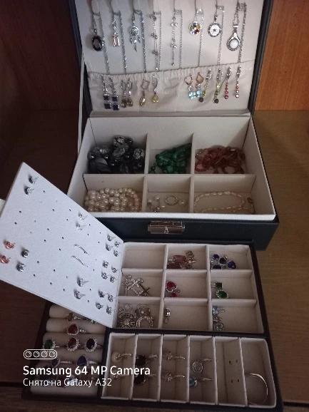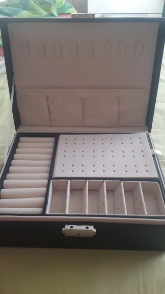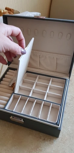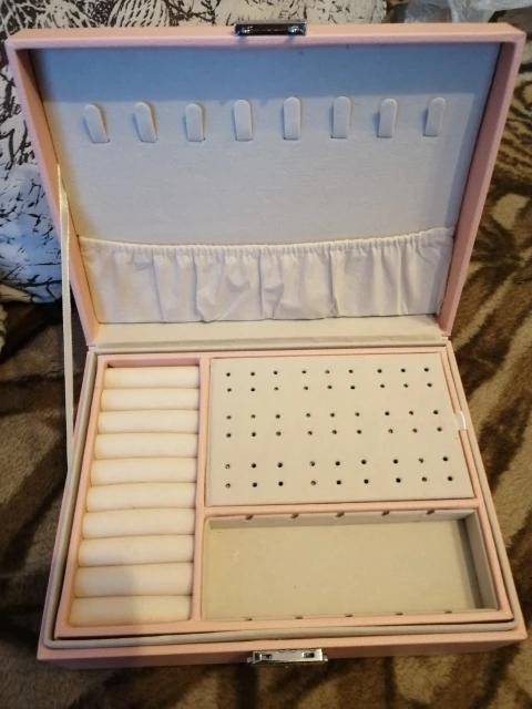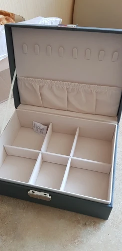 Шкатулка замечательная! Много отсеков для украшений. Продавец прислушался ко всем моим просьбам, шкатулка доехала целой, без изъянов. В некоторых местах остались следы клея, но их легко удалить. Продавцу большое спасибо! Буду рекомендовать этот магазин знакомым