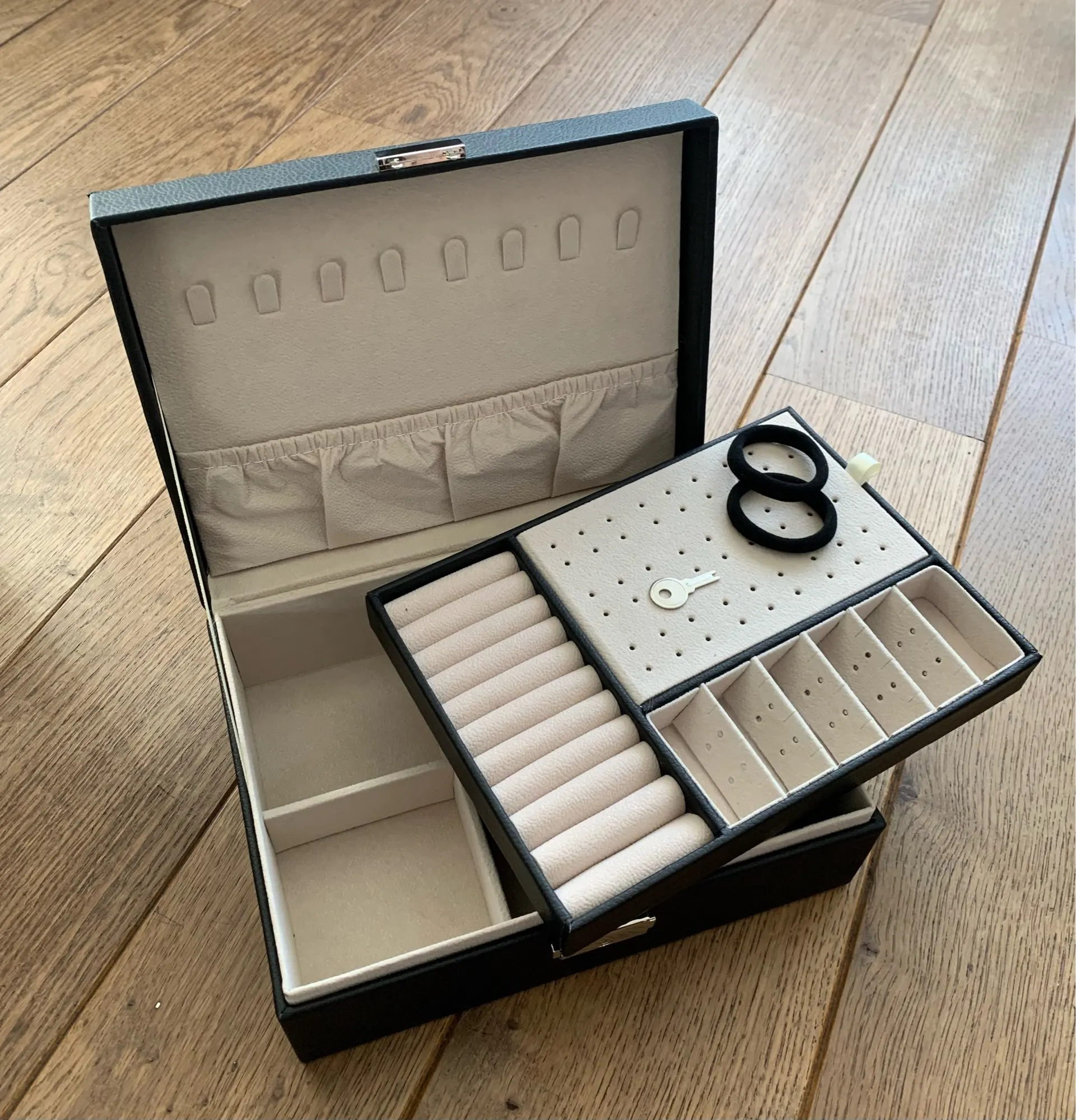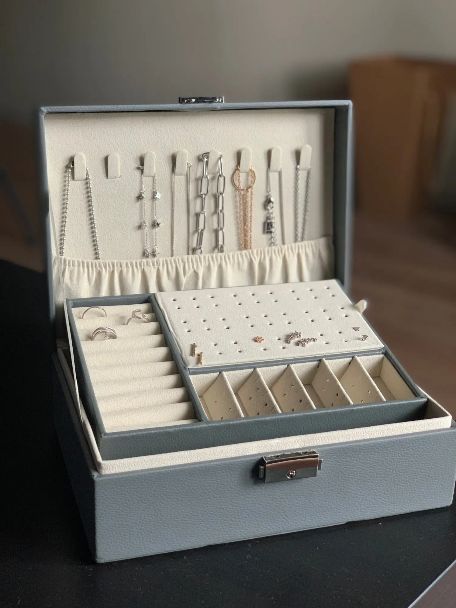 Обалденное качество. Поместились все мои украшения! Правда, надо проветрить - запах клея. Доставка за неделю. Супер!