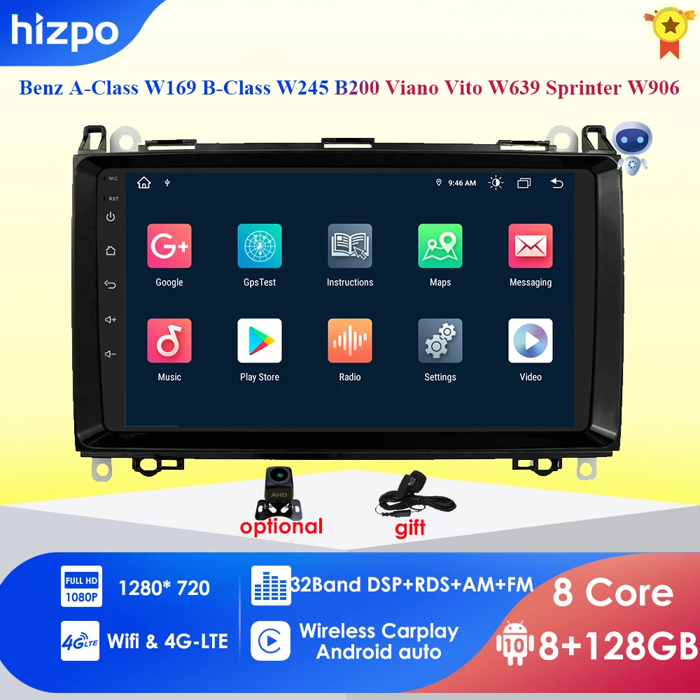 Hizpo автомобильный мультимедийный плеер Android 10 2 Din GPS Авторадио для Mercedes Benz B W245 B150 B160 B170 B180 B200 B55 2004-2012 2 + 32G