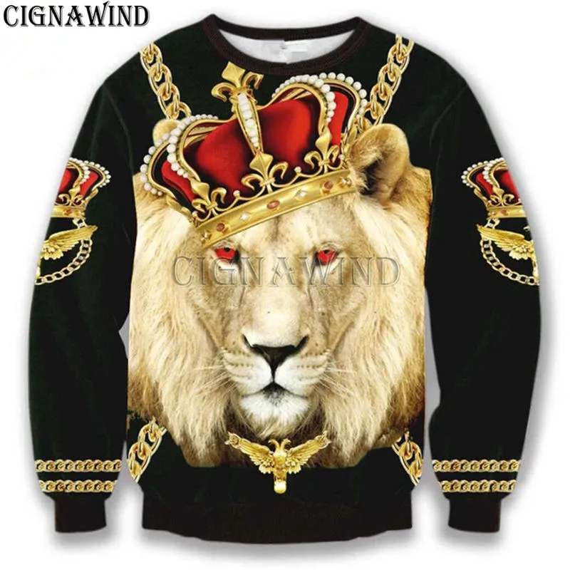Толстовка с капюшоном для мужчин и женщин, модная кофта с 3D-принтом короля, цепочки, короны, Льва, Повседневная Уличная одежда в стиле Харадзюку