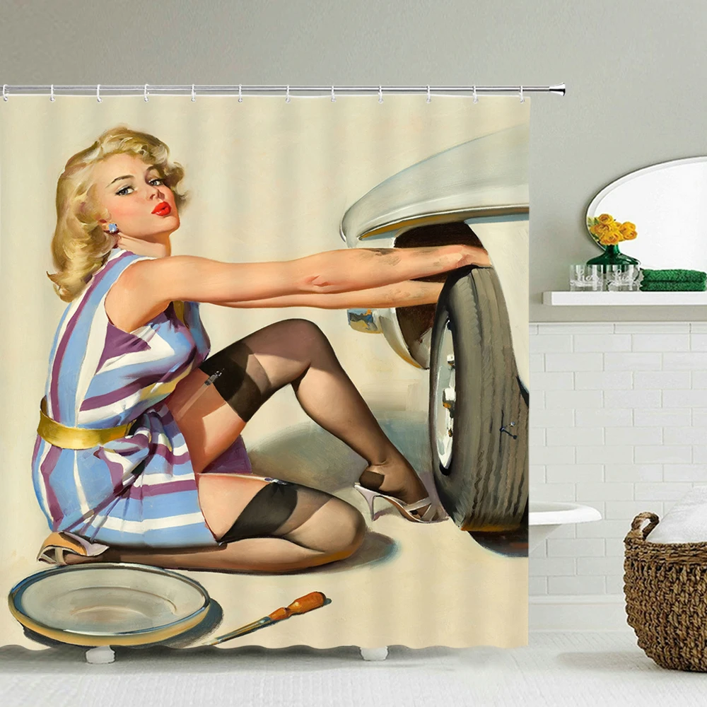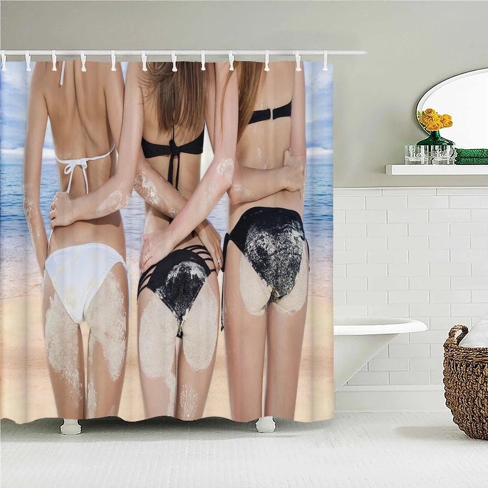 Водонепроницаемая занавеска для душа, занавеска для ванной комнаты из полиэстера с 3d принтом, для привлекательных женщин, с 12 крючками