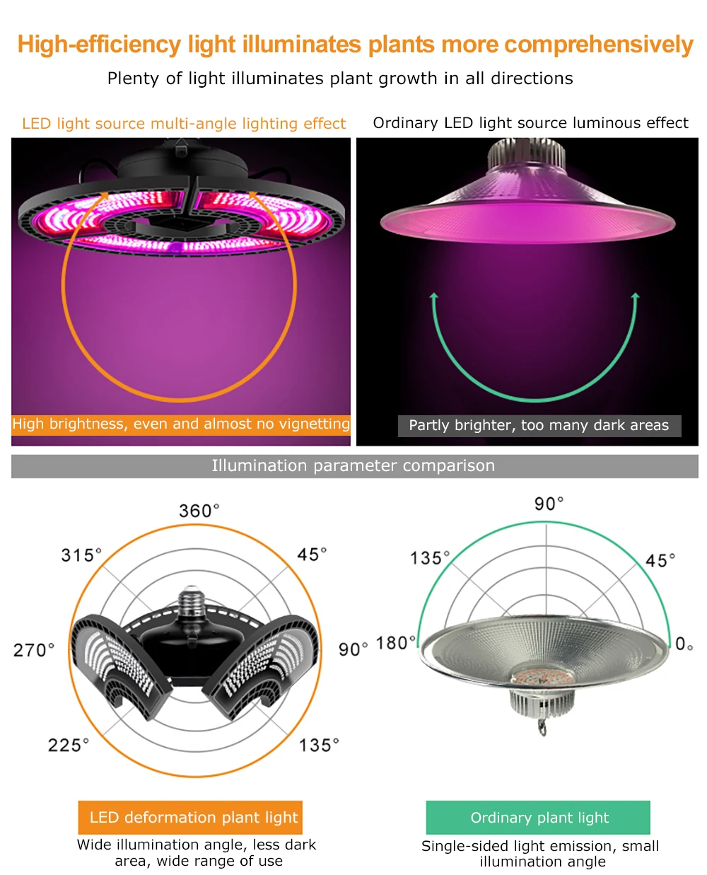 Высокоэффективсветильник более комплексно освещает растения