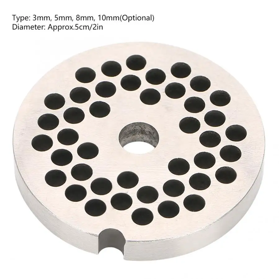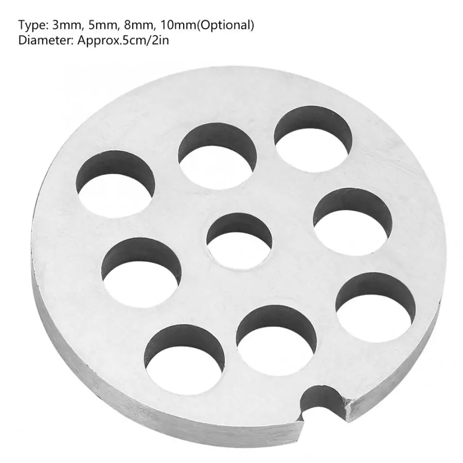 1. Отличная замена, легко изменить, идеально подходит для вашей мясорубки/мясорубки. 2. Есть четыре разных размера небольших круглых отверстий для вас на выбор, для удовлетворения ваших потребностей. 3. Изготовлен из высококачественного материала, прочный, прочный и долговечный в использовании. 4. Легко измельчает мясо, фрукты или овощи, прост в использовании. 5. Подходит для резки чесночной пасты, имбирных пельменей, тушеной начинки, перца, курицы и утиной кости или твердых овощей 6. Хорошая запасная часть для мясорубки, делает вашу мясорубку повторно использовать снова и идеально подходит для всех ваших потребностей в шлифовке.