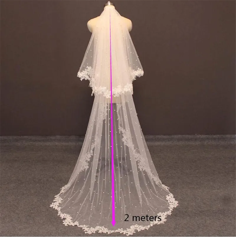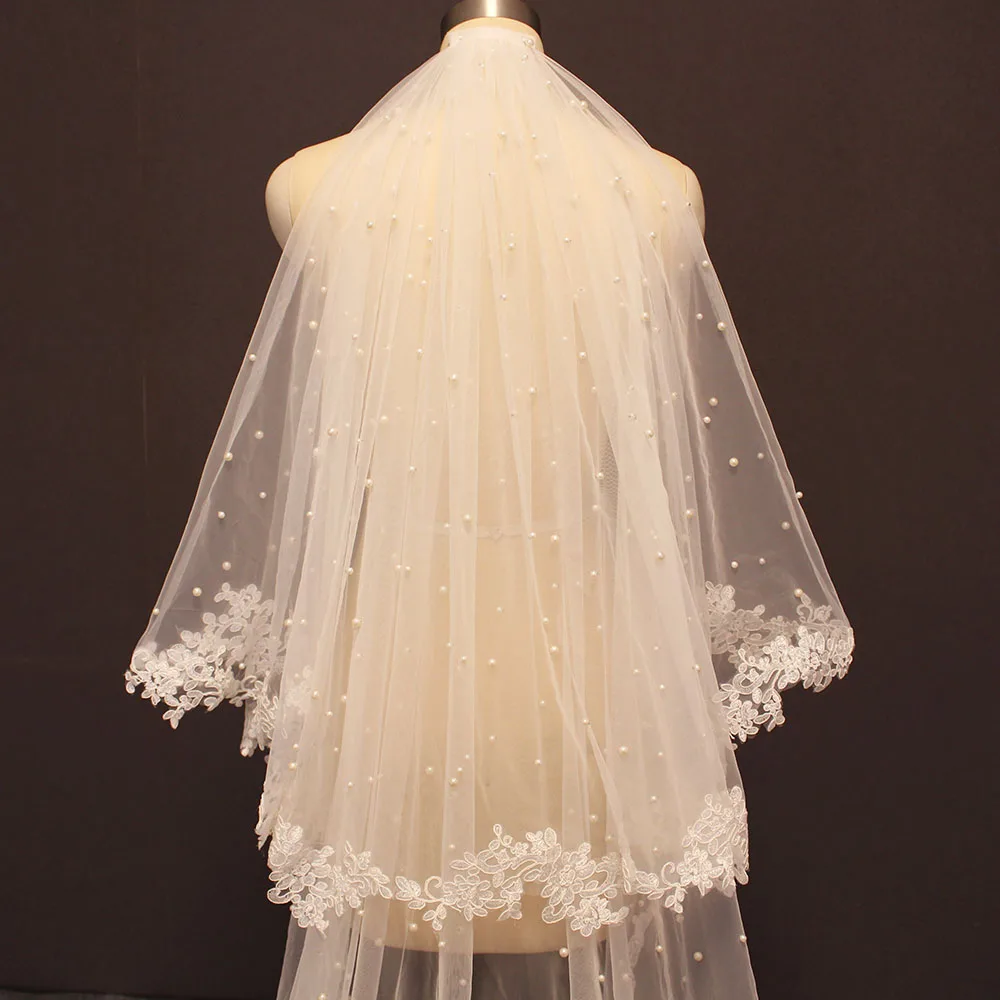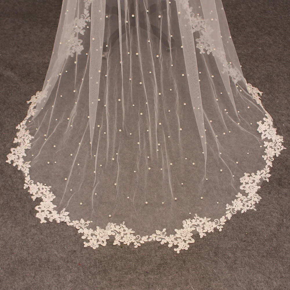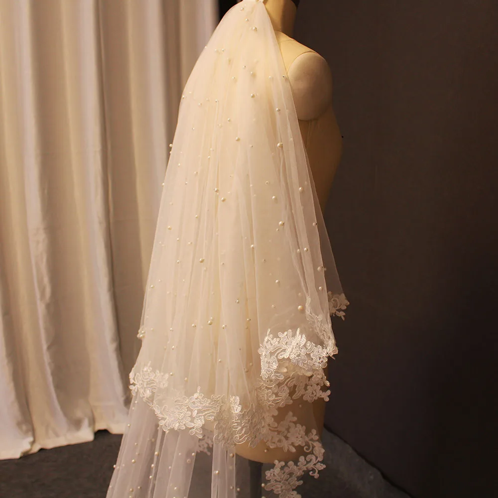 Жемчужная свадебная вуаль с кружевом, 2 слоя, покрытие лица, жемчуг, свадебная вуаль 3,5 метра, длинная вуаль С румяной, свадебные аксессуары