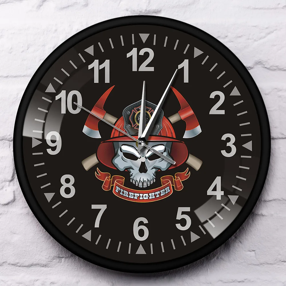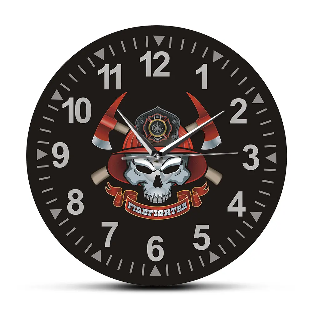 Пожарный череп с перекрещенными осями бесшумные настенные часы с тиккингом Мальтийский крест пожарный череп пожарная табличка отдела настенные часы