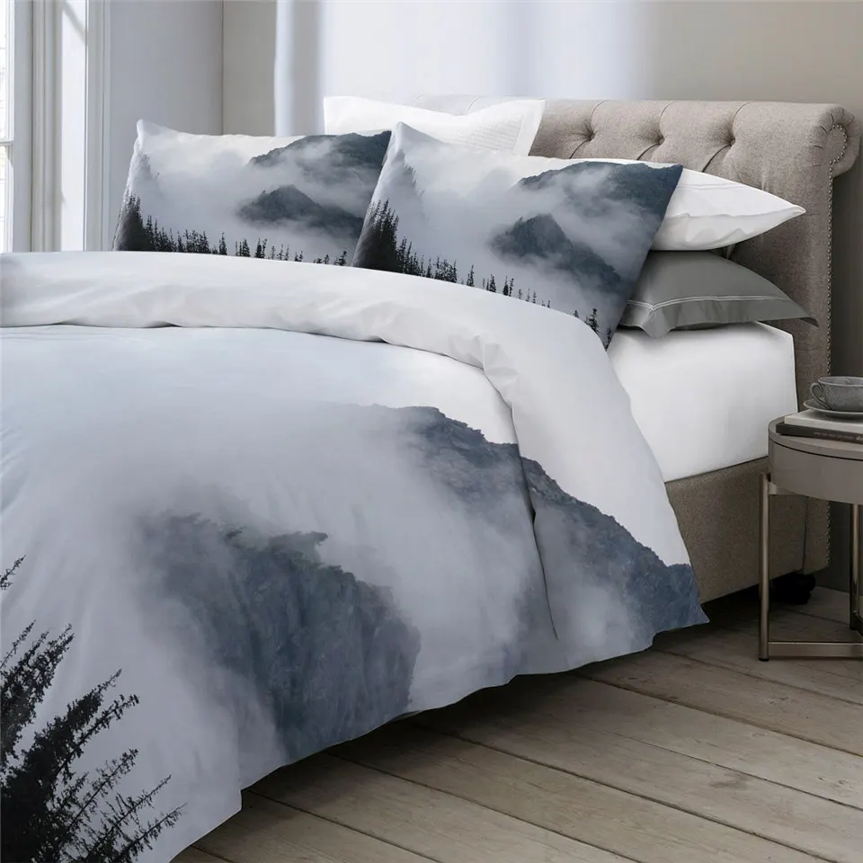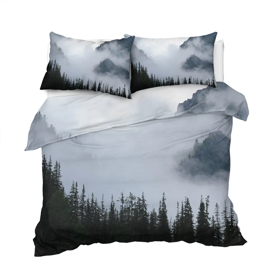 Комплект постельного белья BeddingOutlet с изображением ели, леса, деревьев, природы, пододеяльник, покрывала с туманным пейзажем, Комплект постельного белья в стиле хипстера, 3 шт., Прямая поставка
