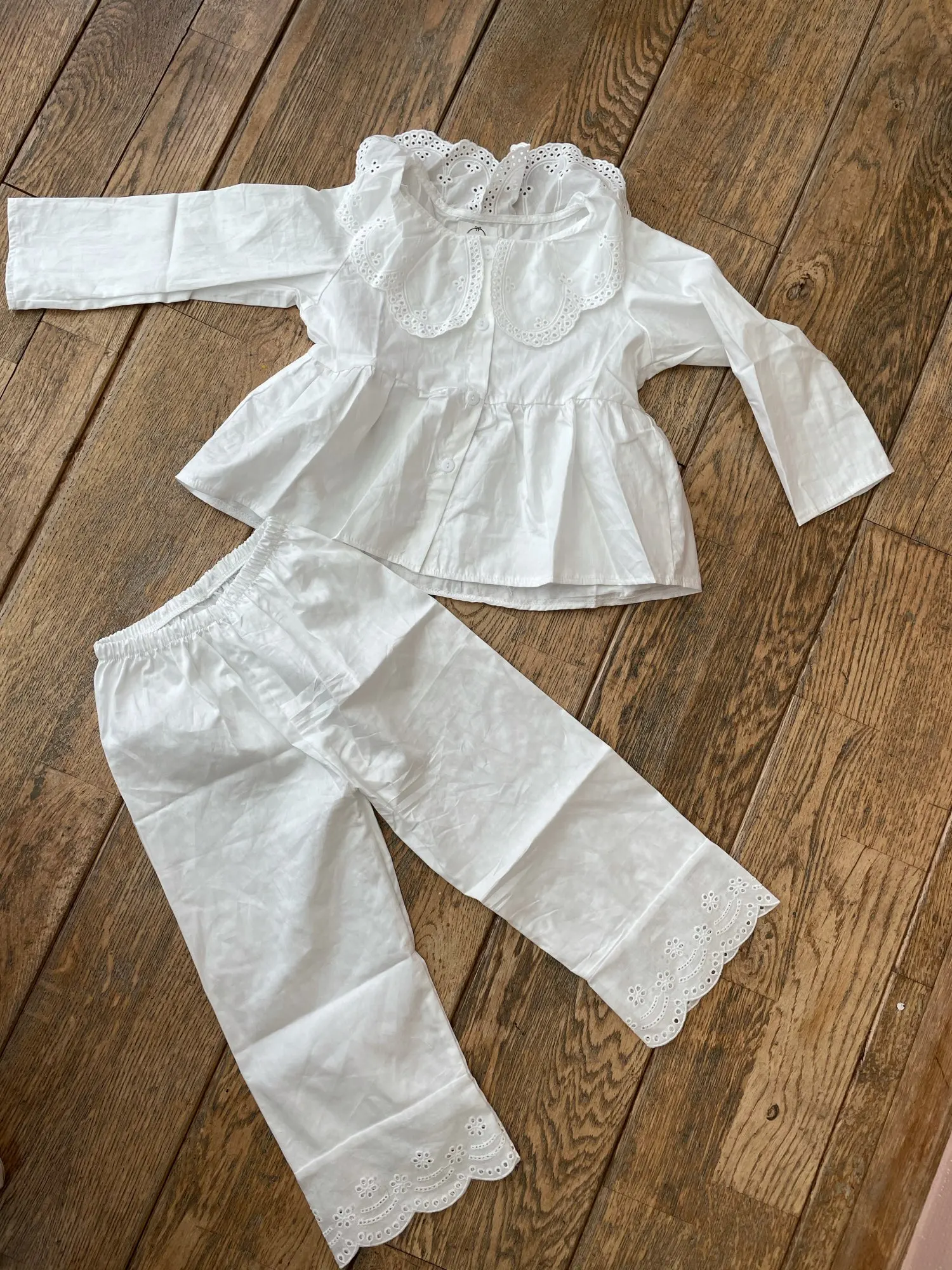 Детские пижамные комплекты с вышивкой Лолиты и отложным воротником. Винтажный детский пижамный комплект для сна, одежда для отдыха. Детская одежда
