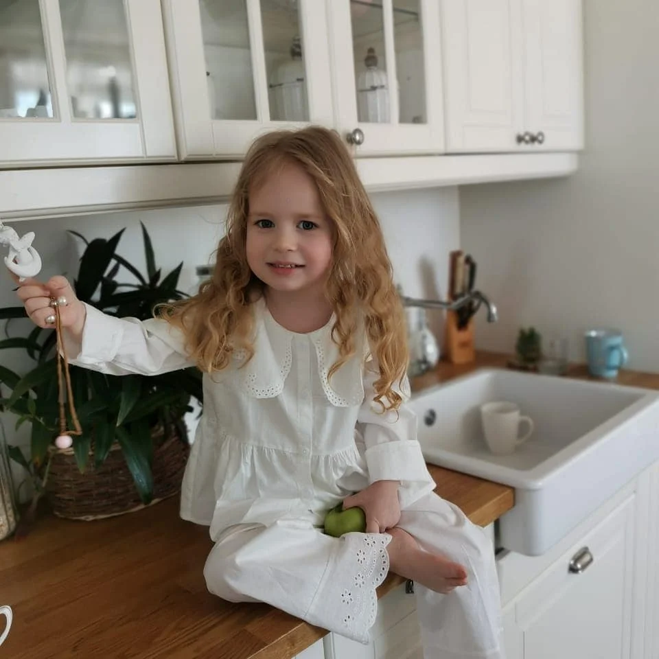 Очень классная пижама. Мягкая, белоснежная, без запаха. Дочка говорит, что чувствует себя принцессой.