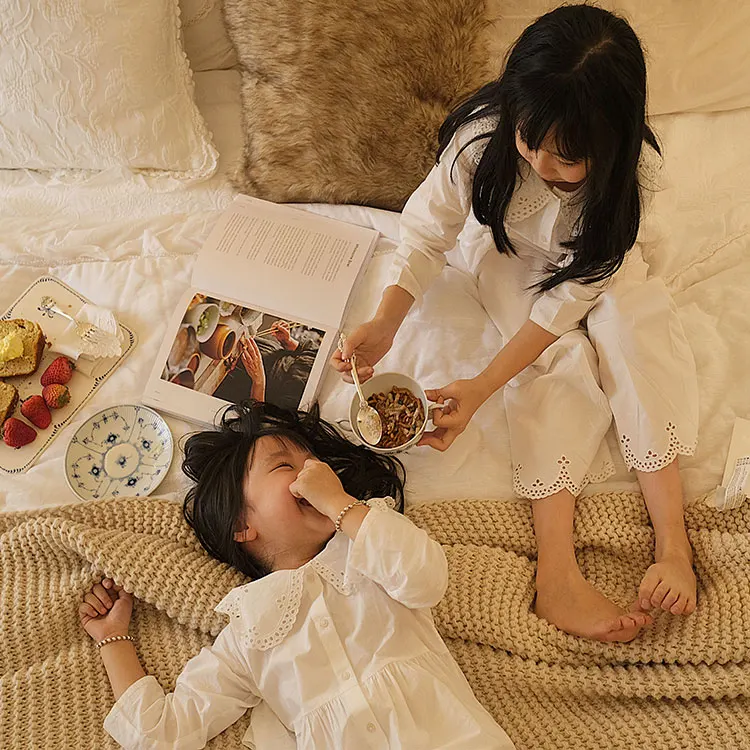 Пижамный комплект для девочек, с вышивкой Лолита, с отложным воротником, винтажный пижамный комплект для малышей, домашняя одежда для сна, детская одежда