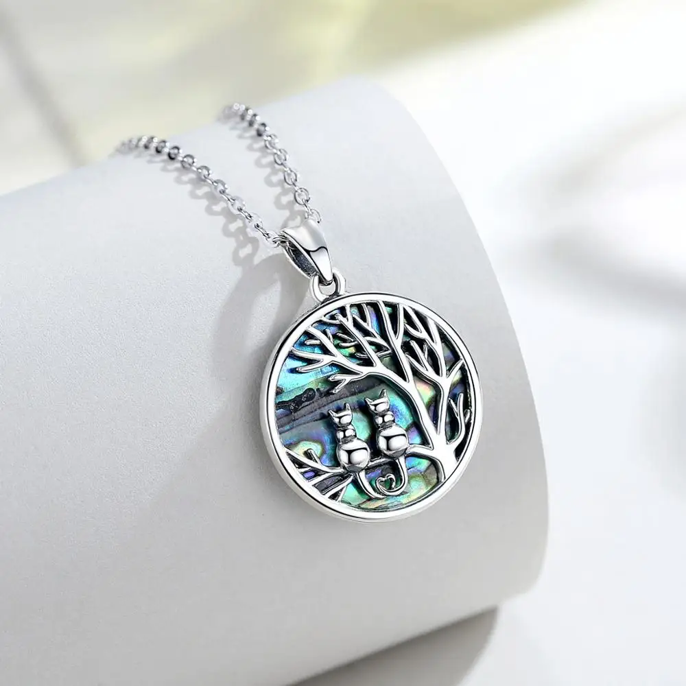 Подвеска Древо жизни EUDORA из стерлингового серебра 925 пробы, ожерелье из ракушек и перламутра в 2 стилях, ожерелье с двумя кошками, Изящные Ювелирные изделия с коробкой