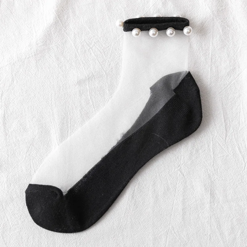 Женские Прозрачные шелковые носки с жемчугом, тонкие хлопковые носк...