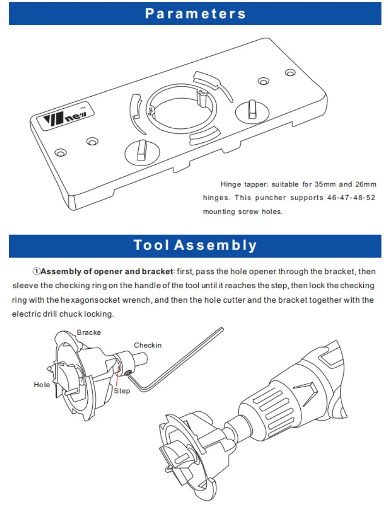 Скрытый шарнирный джиг подходит для петель отверстие распиловки до 35 мм.