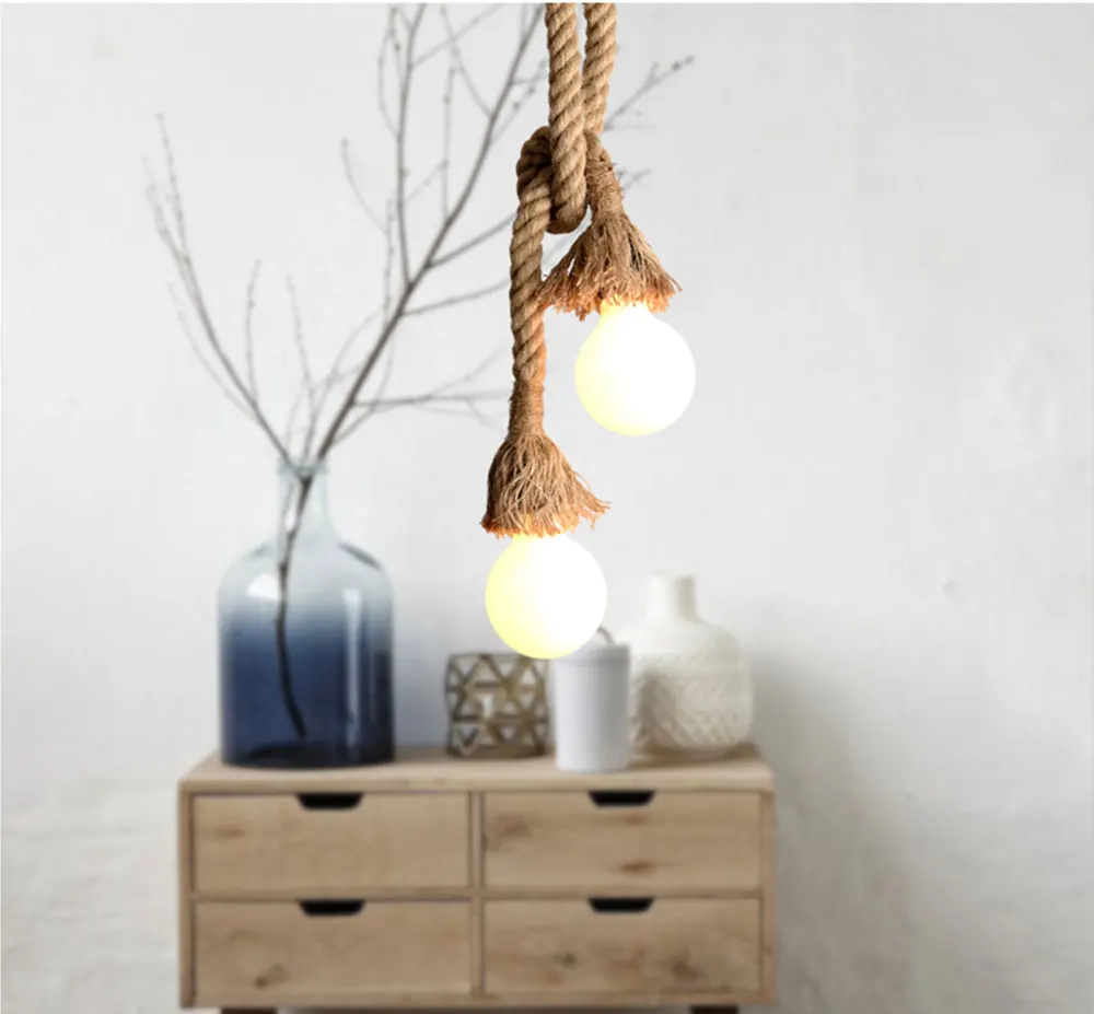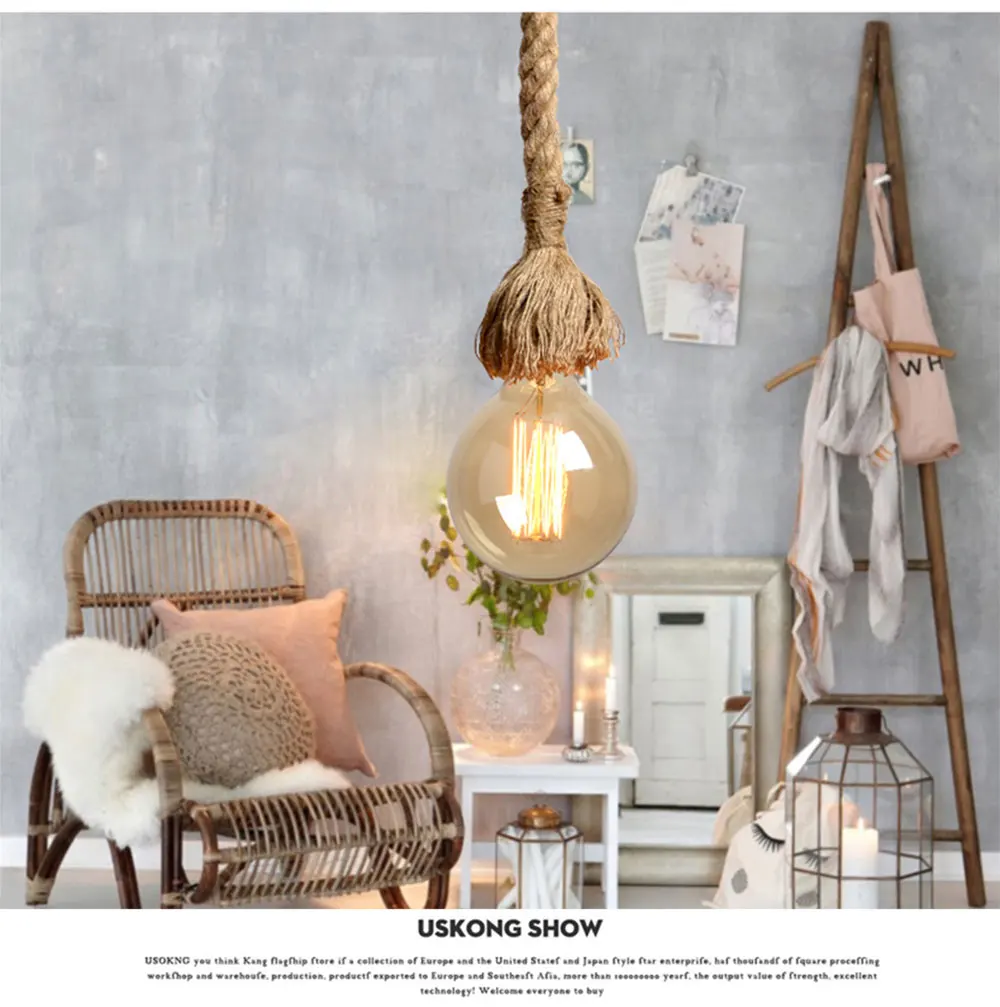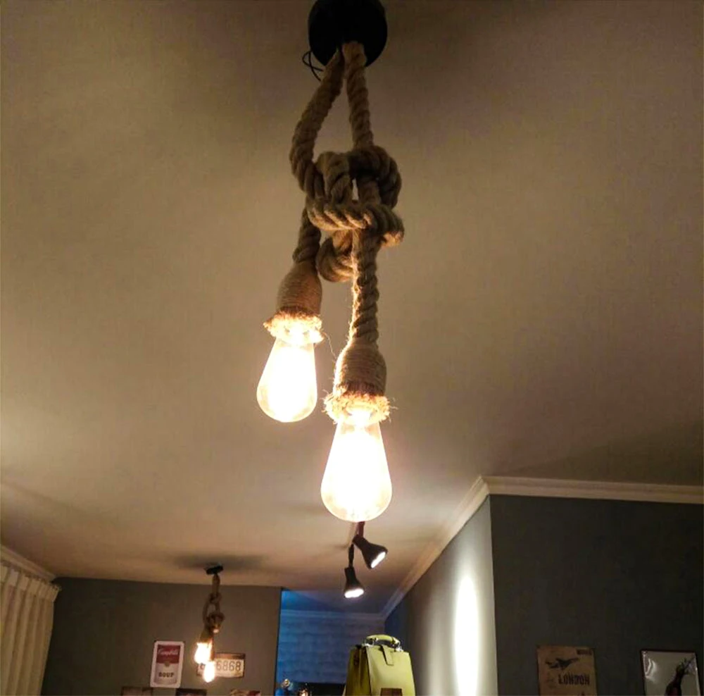 Винтажные подвесные светильники E27 в стиле ретро, лампа из пеньковой веревки с одной и двумя головками, в стиле индастриал, в американском стиле лофт, украшение для гостиной