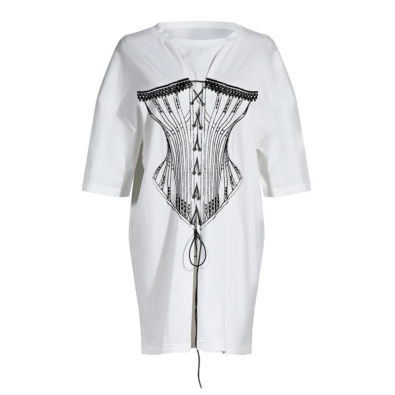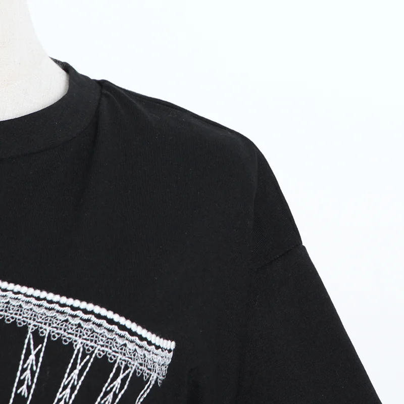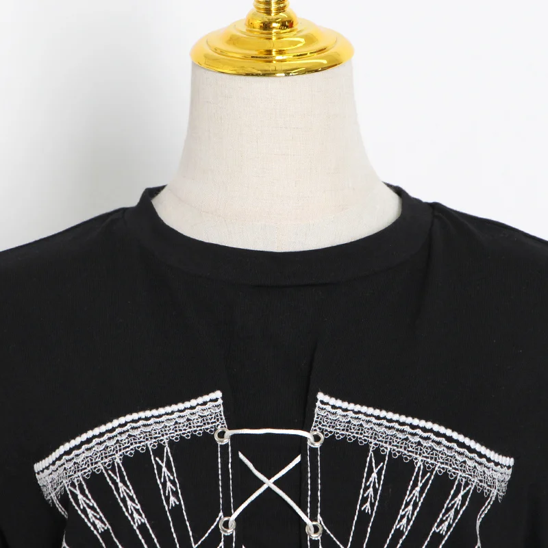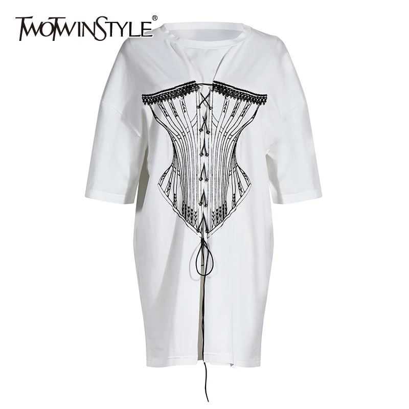 Женская свободная футболка TWOTWINSTYLE, белая Повседневная футболка с вышивкой, круглым вырезом, коротким рукавом и шнуровкой на лето 2019