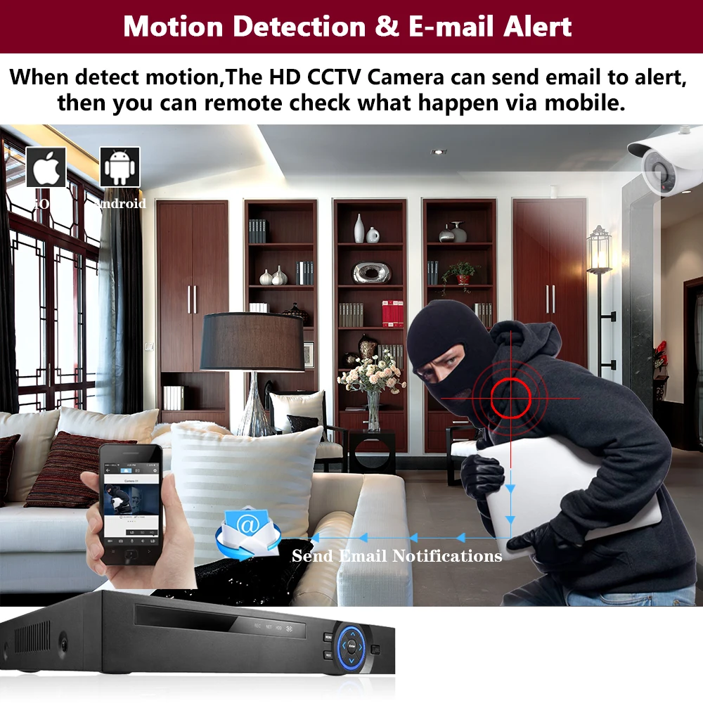 Эта система предназначена для отправки оповещения по электронной почте при обнаружении любого движения и позволяет записывать только при обнаружении движения.