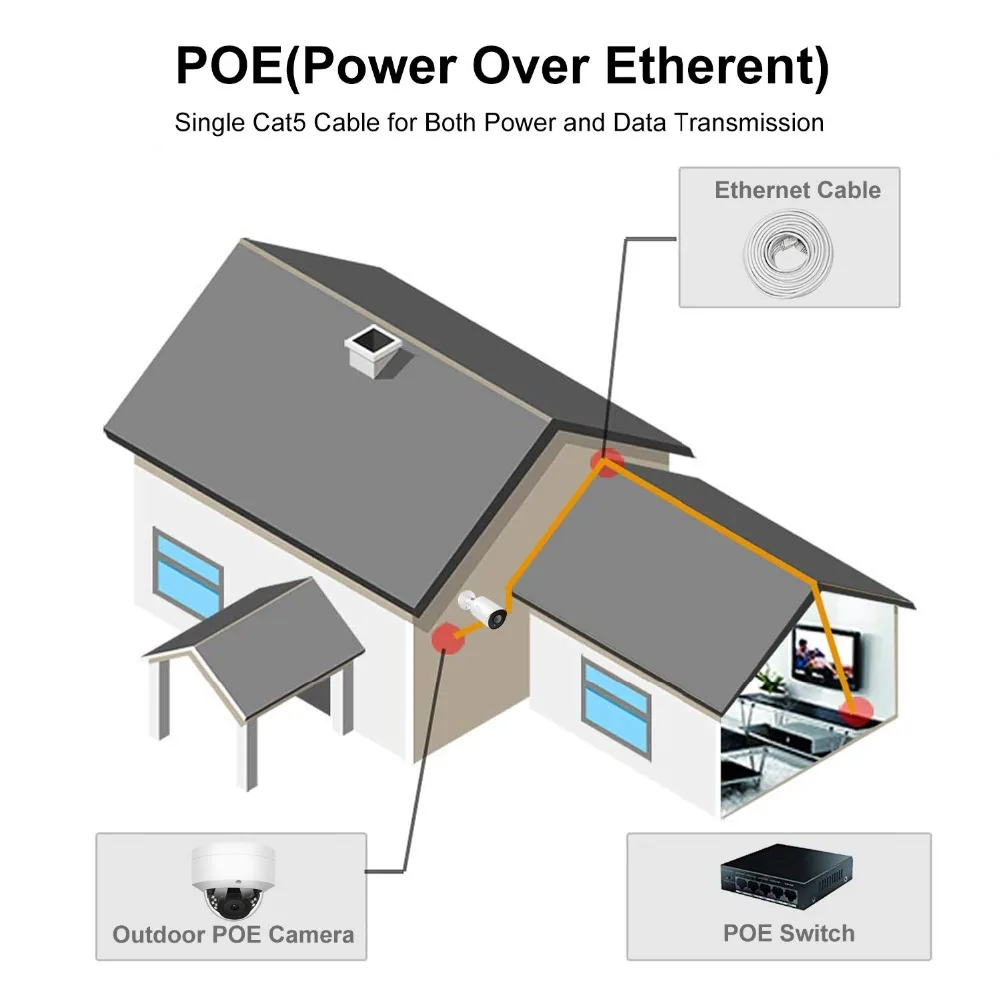 Благодаря компрессии H.265 вы можете хранить больше информации с использованием меньшего количества жестких дисков, что позволяет делать больше с меньшим количеством и значительно уменьшает размеры файлов с помощью этого новейшего формата сжатия видео. PoE позволяет устройствам IP (Интернет-протокол) получать питание и данные по существующей локальной сети (локальной сети). Это устраняет необходимость установки отдельного кабеля питания, упрощает установку и снижает затраты на кабели.