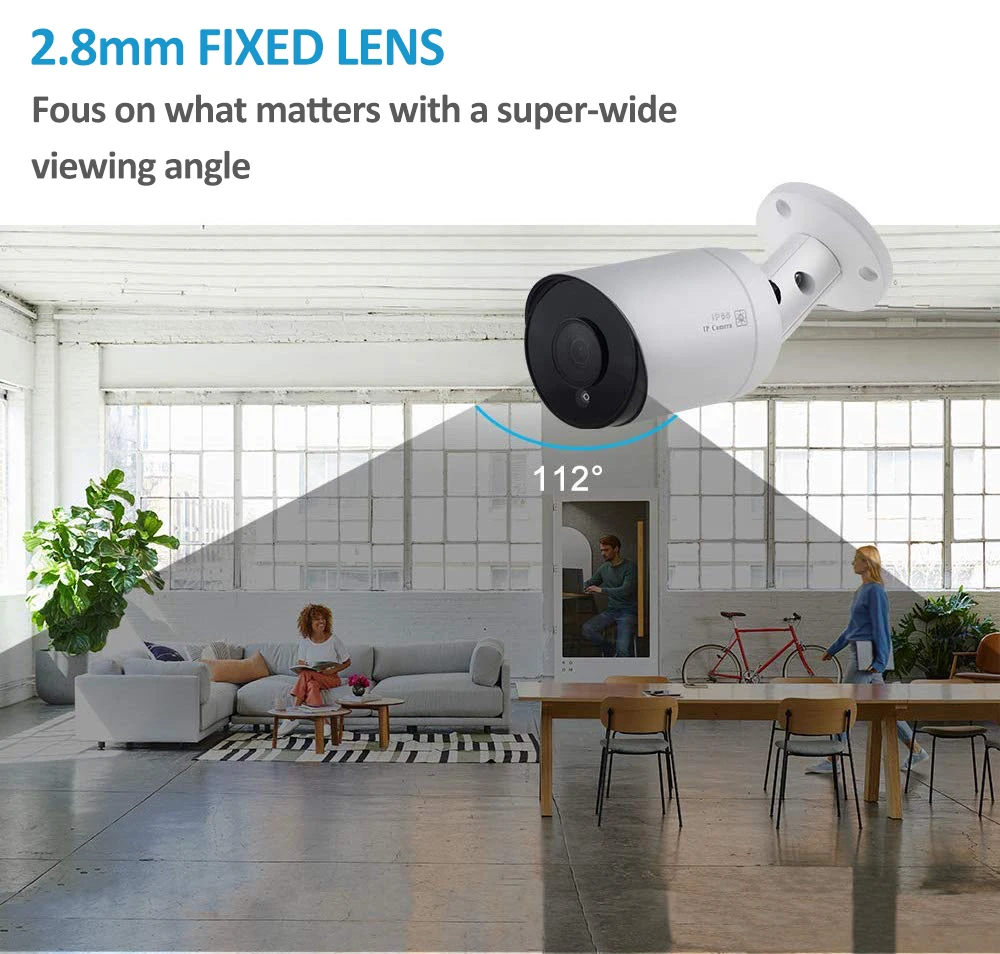 Идеально подходит для использования на открытом воздухе. С широким диапазоном рабочих температур, он предназначен для выдерживания экстремальных температур и защищен от пыли и дождя. 2,8 мм объектив с фиксированным фокусным расстоянием на эту камеру предлагает впечатляющий 108 ° Поле зрения для того чтобы покрыть и защитить более широкую область, используя меньше устройств для активна из-за большого количества.