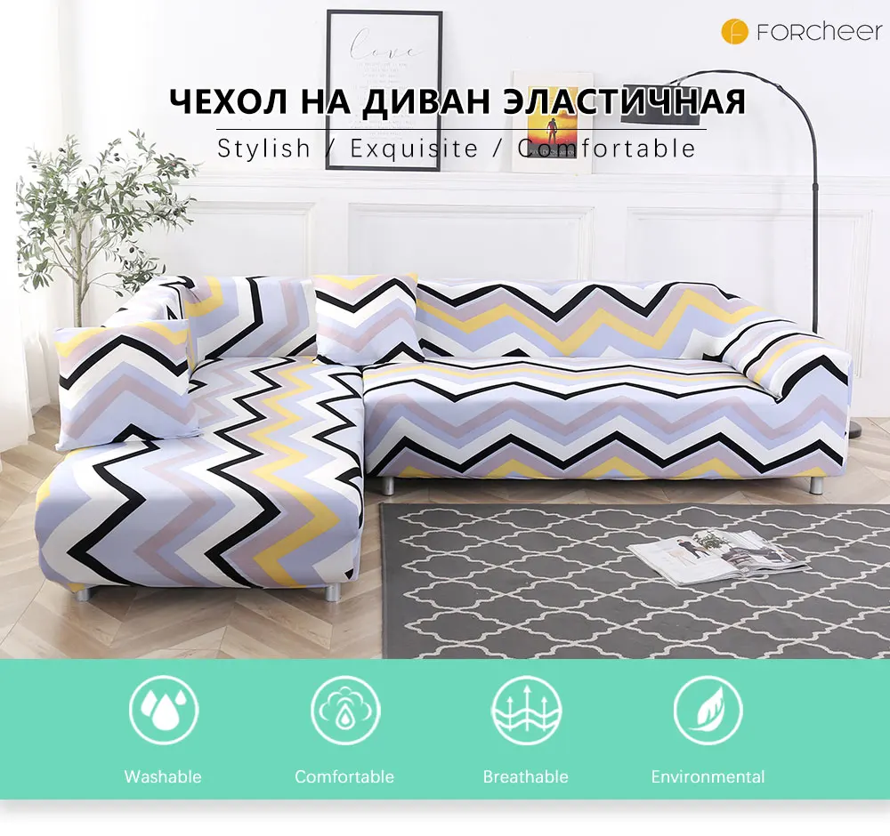 чехлы доя дивана кресло чехол на диван угловой для гостиной эластик и спандекс Геометрия и печать
