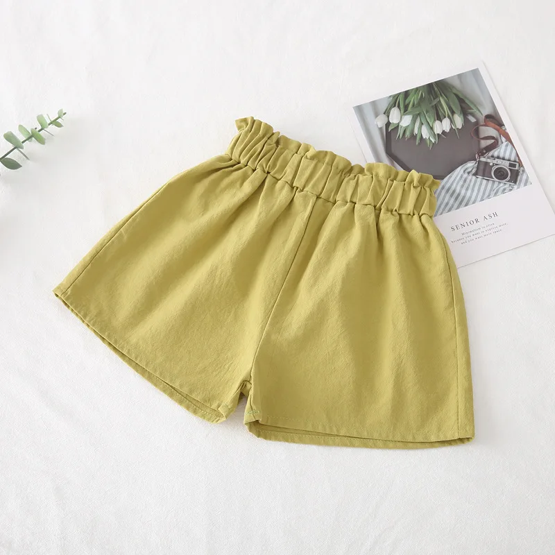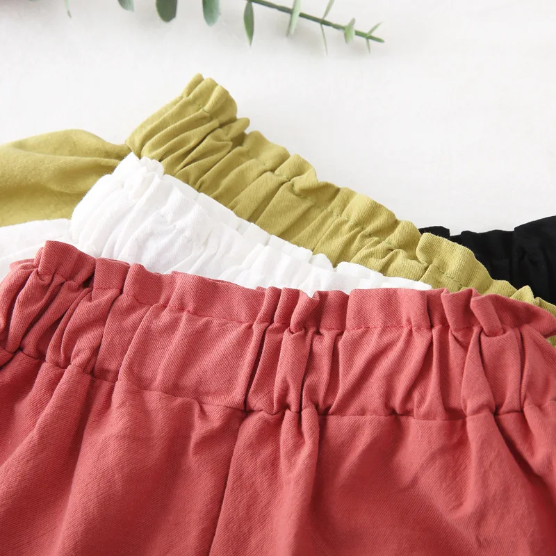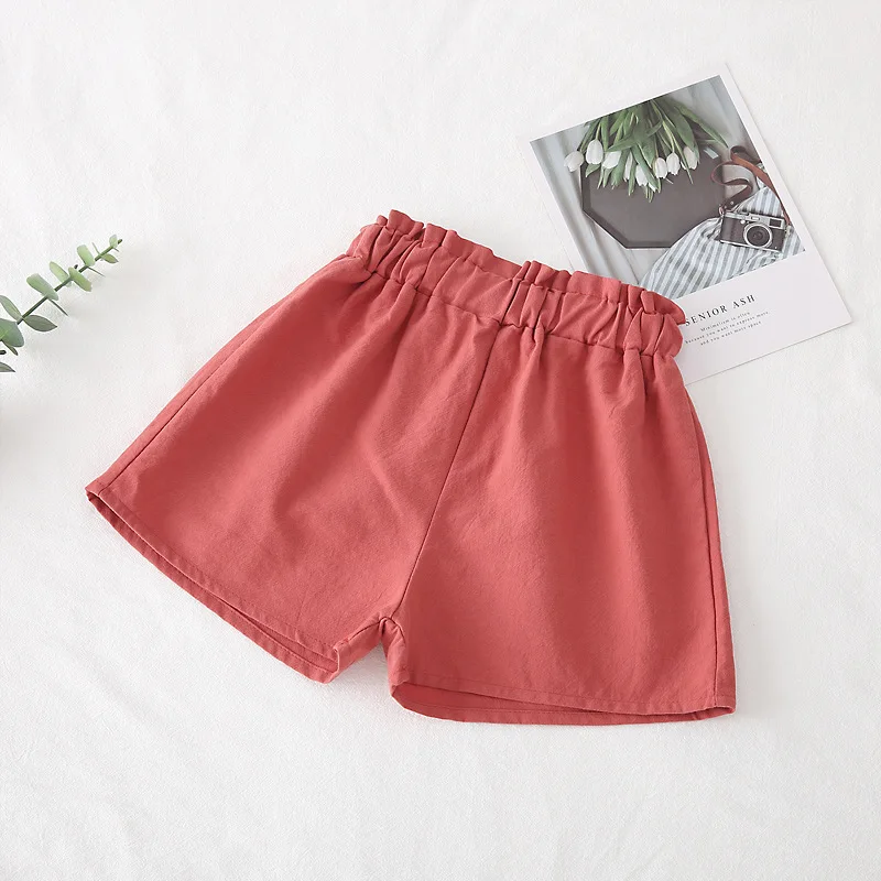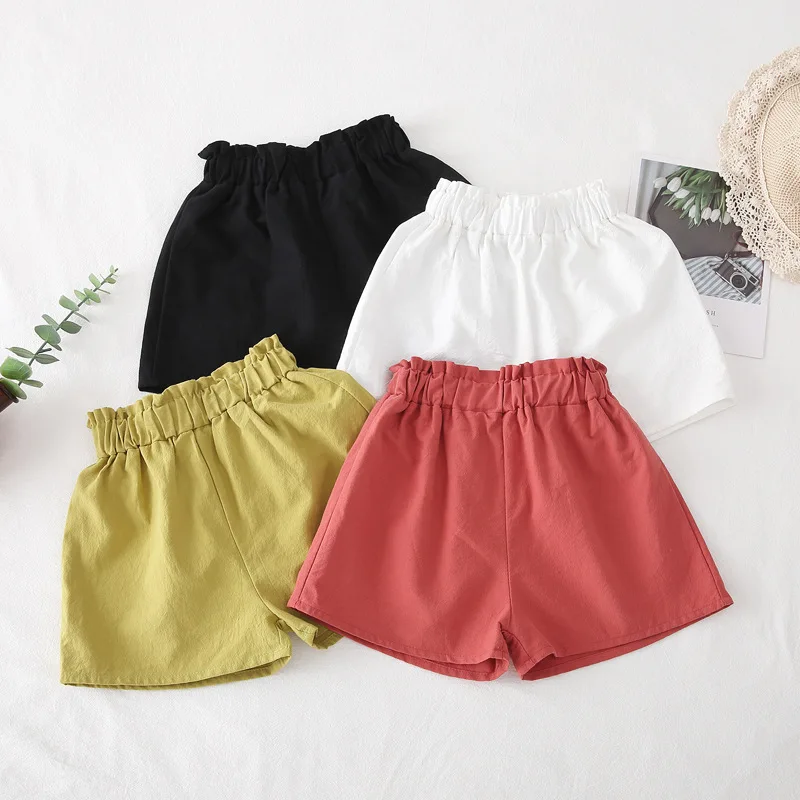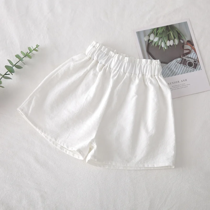 Шорты для девочек с высокой талией, летние хлопковые льняные штаны, свободные тонкие шорты для девочек, DT094