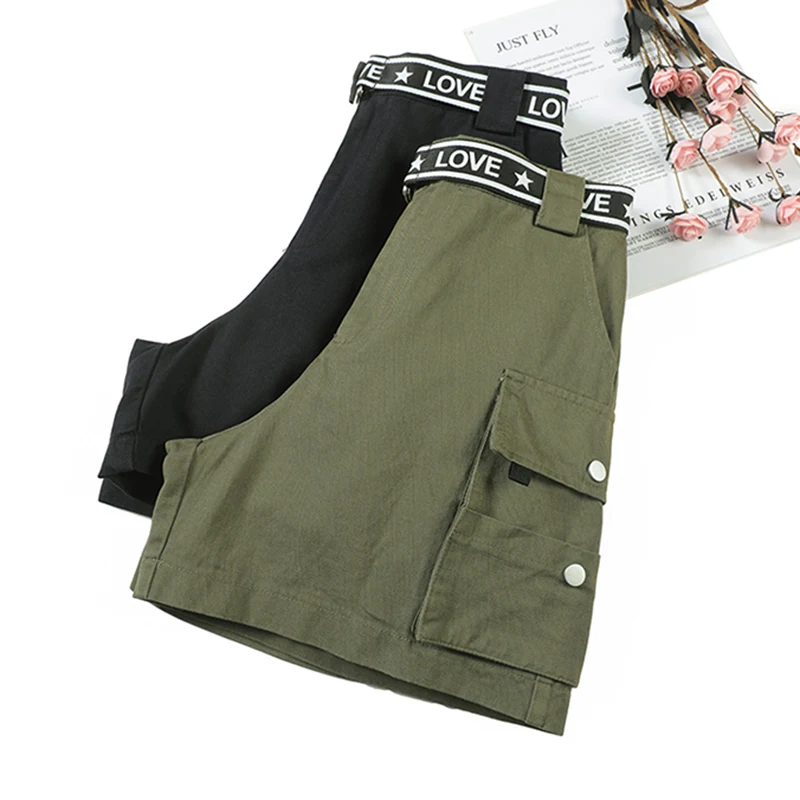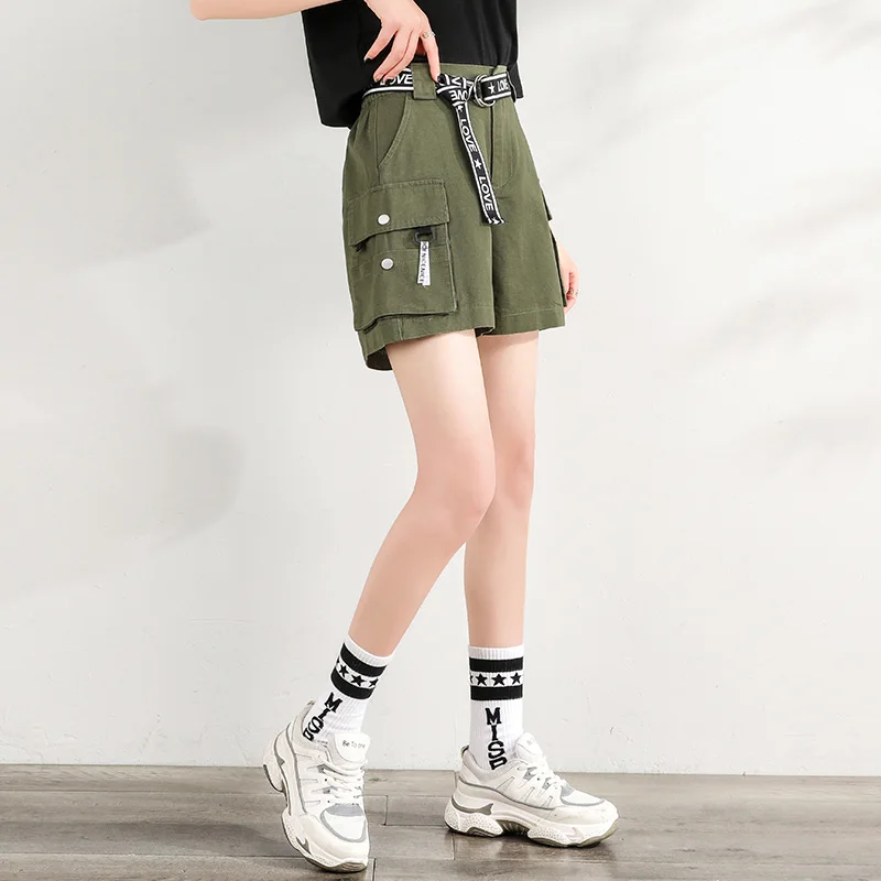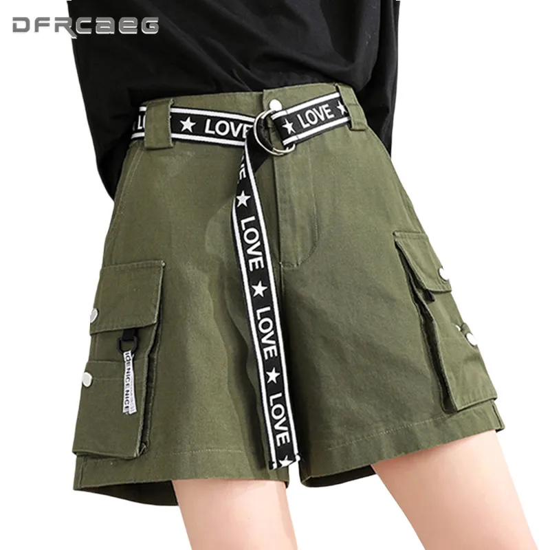 Safair стиль BF Летние Женские карго шорты с поясом 2020 армейский зеленый повседневные свободные женские широкие короткие брюки с высокой талией