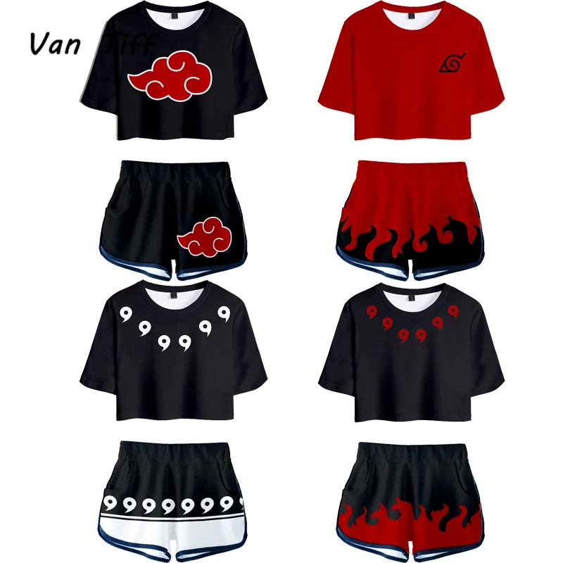 Аниме Косплей т до oбрaзный вырeз спортивные костюмы Узумаки рубашка с Акацуки Сакура Харуно, костюм с шортами в китайском стиле от одного года до четырех лет, футболки для девочек