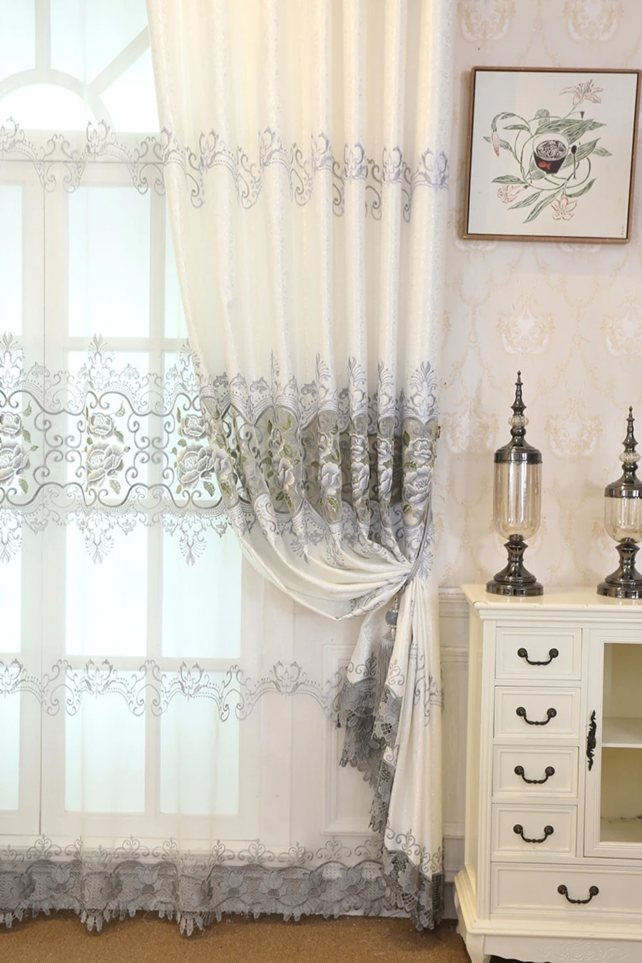 Роскошные серые шторы с вышивкой для окна в спальне, тюлевые шторы для гостиной, оконные шторы, занавески AP147 #20