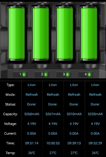 Доставка - месяц. Причём, больше 3 недель посылка ходила по Китаю, а потом, прилетев в РФ, меньше, чем за неделю добралась от аэропорта до пункта выдачи. Приехала в СДЭК. Приехали заряженные примерно наполовину (3.5 - 3.6 вольта), как и положено для длительного хранения. Каждая банка в своей коробке и потом пара коробок ещё а одной общей. Прогнал цикл заряд-разряд-заряд - все банки показали 5100+ ёмкость (на скриншоте, к сожалению, не сколько отдали, а сколько потом взяли при заряде, но на самом заряднике можно было посмотреть и сколько отдали). Разряжал до напряжения 3в, током 1А. Сейчас доволен, посмотрим как служить будут. Фото рядом с 18650 - для сравнения размеров.