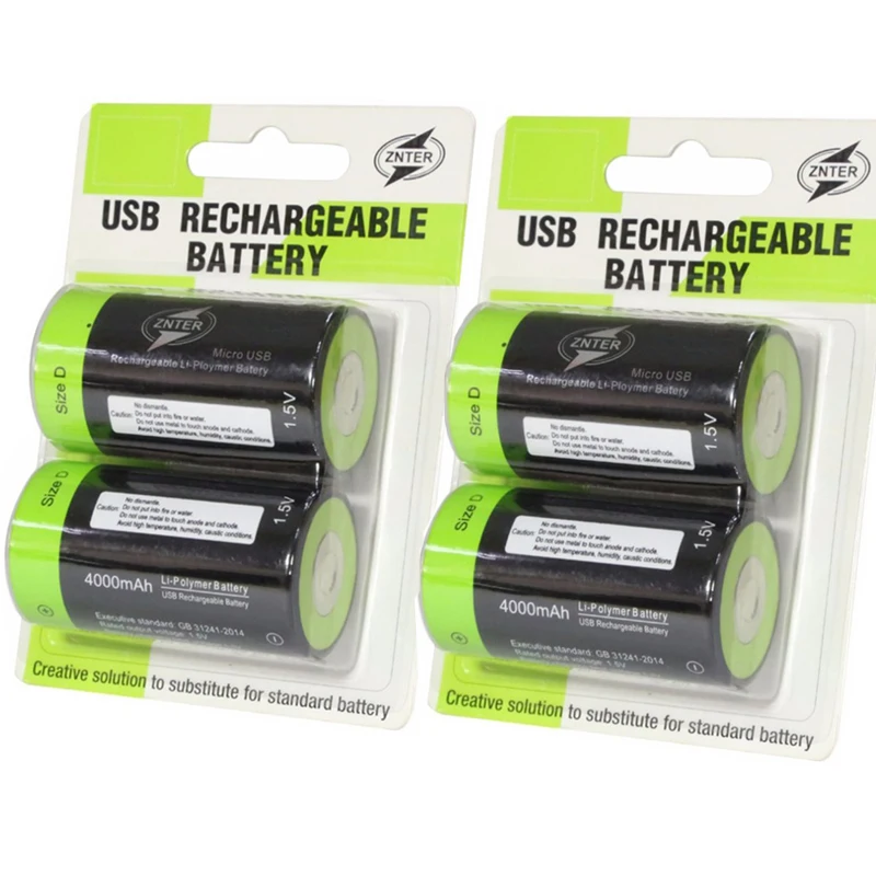 Оригинальный литий-полимерный аккумулятор ZNTER 1,5 в, 4000 мАч, USB-кабель, размер D