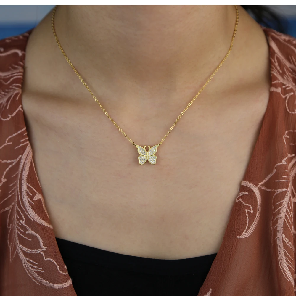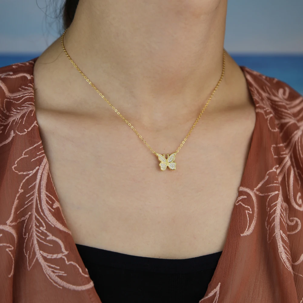 Высокое качество 925 стерлингового серебра cz бабочка Ожерелье S925 серебро Модные женские украшения 38 см = 15 дюймов41 см = 16 дюймов46 см = 18 дюймов