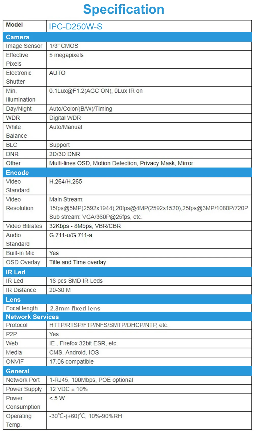 Эта ip-камера PoE с 1/3 ″ прогрессивным сканированием CMOS обеспечивает 5 мегапикселей (2592x1944), обеспечивая уровень детализации, необходимый для распознавания лиц и идентификации номерного знака.
