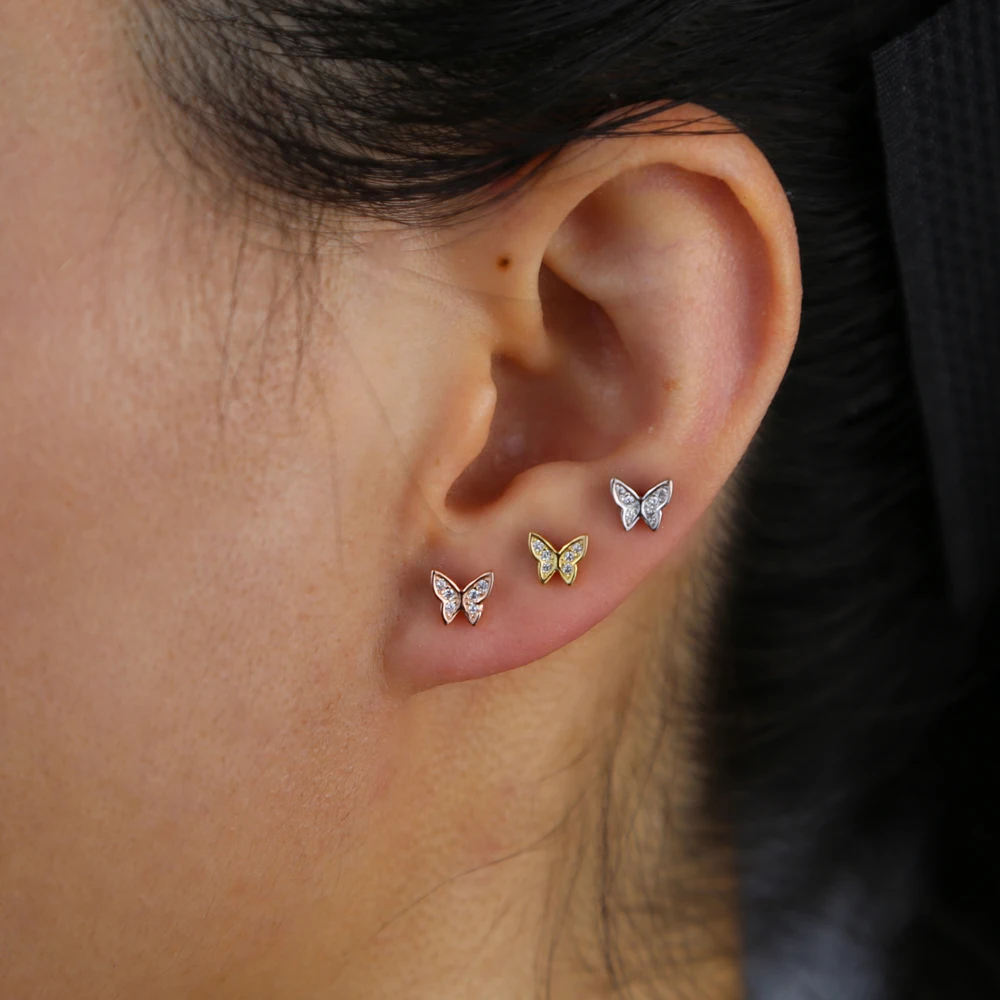 2021 Новый миниатюрный маленький CZ Сережка-гвоздик в форме бабочки...