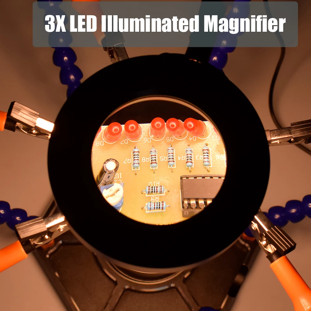 Светодиодный увеличительный экран NEWACALOX 3X, 6 шт., гибкий держатель для печатных плат, сварочный держатель со стальным проводом