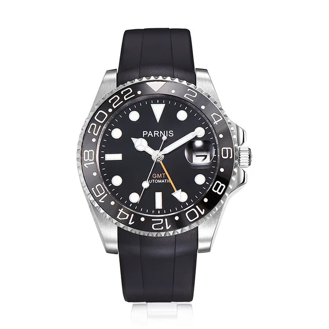Parnis 40mm часы мужские спортивные механические часы GMT черный, к...