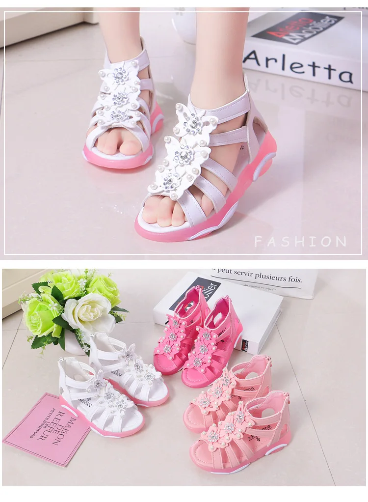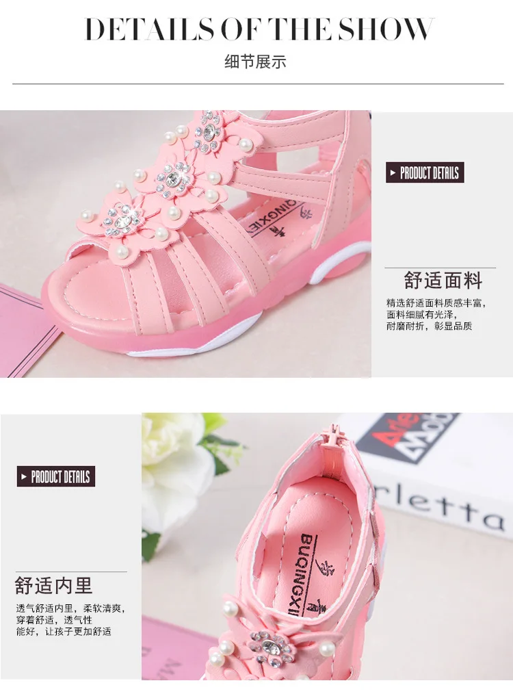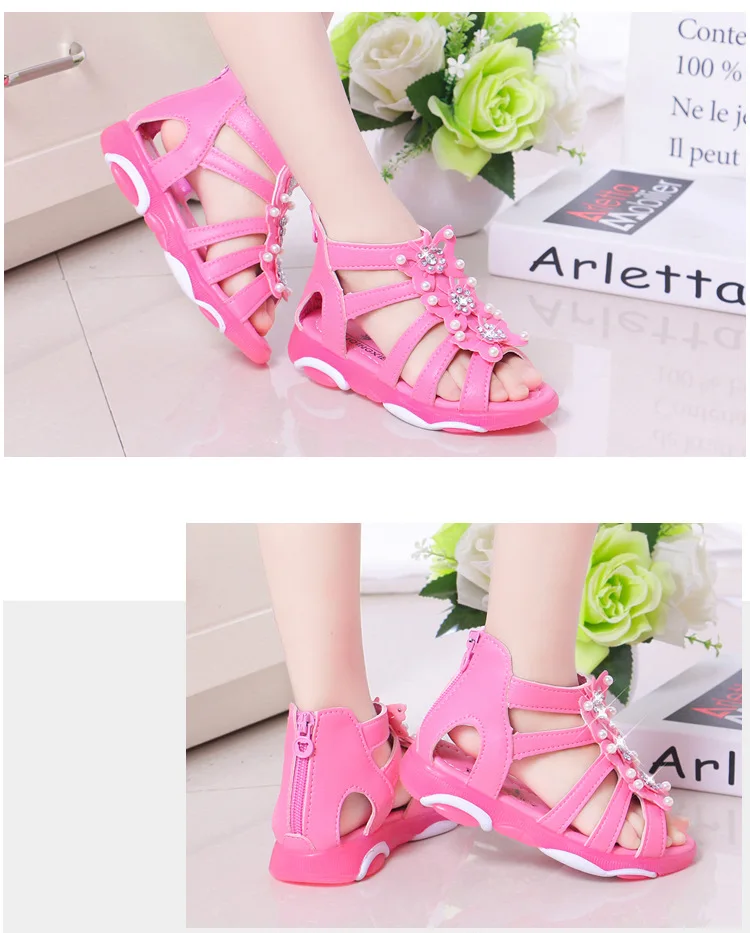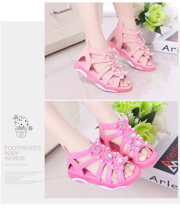 Детские сандалии для девочек, мягкая кожа, пляжные босоножки с цветочным принтом, для начинающих ходить принцесс, для студентов, лето