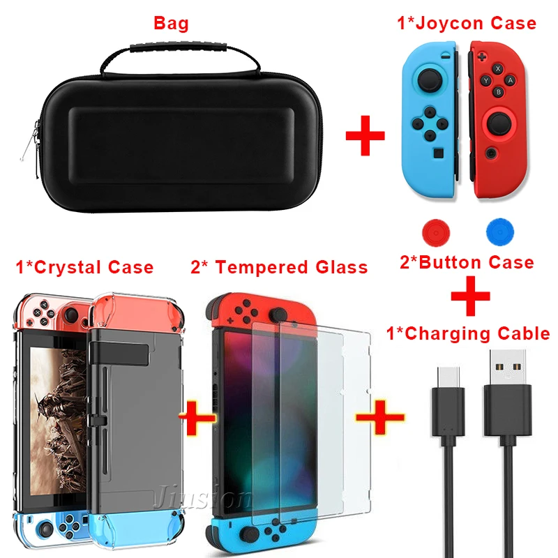 Жесткий чехол для Nintendo Switch, 6 в 1, комплект из ЭВА, портативный чехол для консоли Nitendo Switch, Джойстики, ручки, аксессуары