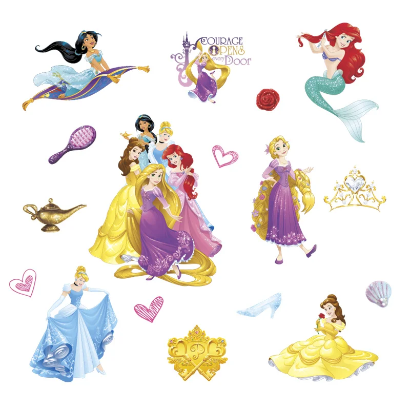 Disney Princess Cinderalle Аврора, наклейки Рапунцель для детской комнаты, аксессуары, настенные наклейки, постер, украшение для дома, для комнаты для девочек