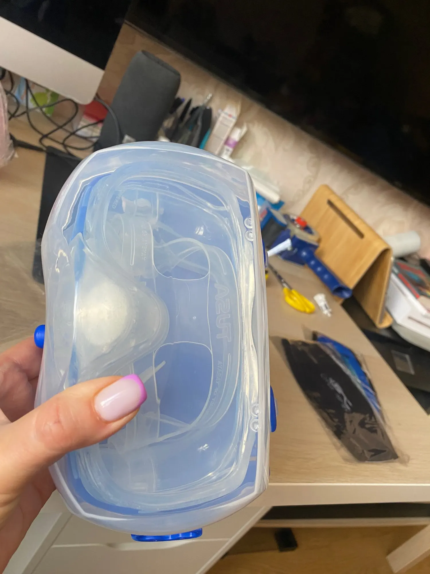 прочный пластик, не хрупкий, ударопрочный. есть защёлка, отверстия для оттока воды. универсальный размер для всех видов масок для погружения. рекомендую