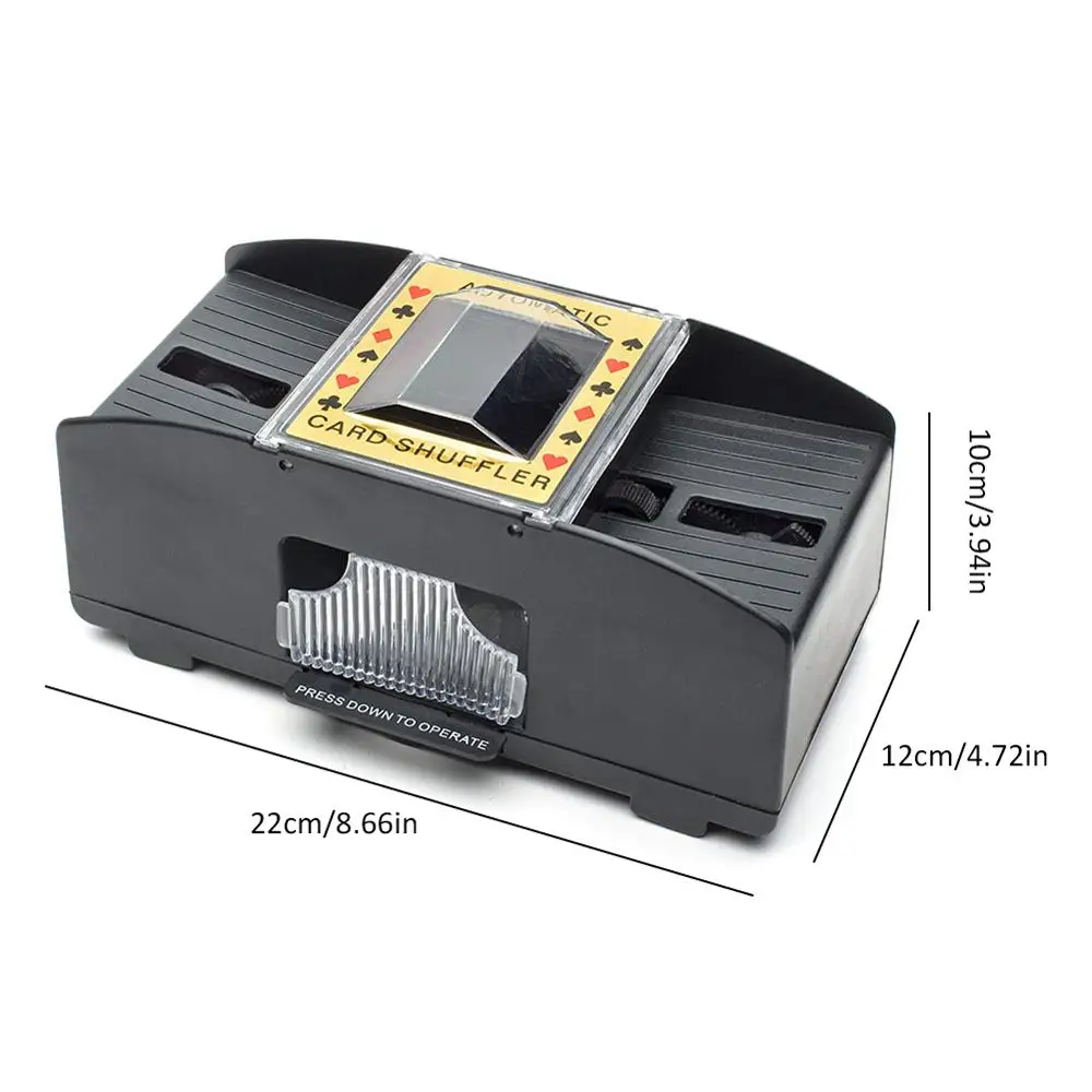Характеристика:1. Идеально подходит для мостов или покерных игральных карт. Легко автоматически перемещается до 2 колод карт2. Требуется 4 * батарейки АА (не входят в комплект)3. shuffler карты с батарейным питанием. Просто нужно нажать кнопку, легче на ваших картах, чем ручная работа.4. shuffler карты отлично подходит для всех, от покера, Техасского холдинга и блэкджека до торговых карточных игр.5. Продукт не включает игральные карты.Информация о продукте:100% новый товар высокого качества.Цвет: черныйМатериал: пластикРазмеры: 20,5 см (8.07in) × 9,5 см (3.74in) × 8,3 см (3.27in)Питание: 4 × 5 АА батареи (не входят в комплект)Может работать 1-2 набора игральных картКоличество: 1 шт.Примечание:1. Допускается погрешность в 1-3 см из-за ручного измерения. Пожалуйста, убедитесь, что вы не возражаете перед покупкой.2. В связи с разной конфигурацией разных мониторов изображение не отображает фактический цвет товара. Спасибо!Посылка включает в себя:1 * Shuffling машина