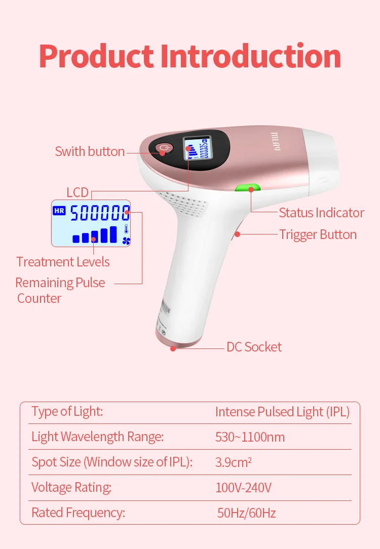Лазерное удаление волос MLAY, 500000 вспышек, фотоэпилятор с малайским лазером, IPL эпилятор, Перманентный депилятор для женщин, электрический эпилятор