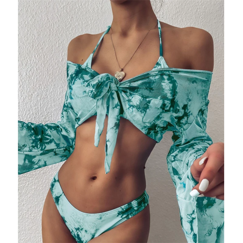 Купальники женские GNIM с длинным рукавом, бандажные бикини, лето 2020, сексуальный бразильский купальник, Женский комплект из трех предметов, бикини