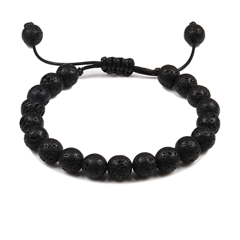 Браслет из бусин 8 мм натуральный тигровый глаз и лавовый камень ру...