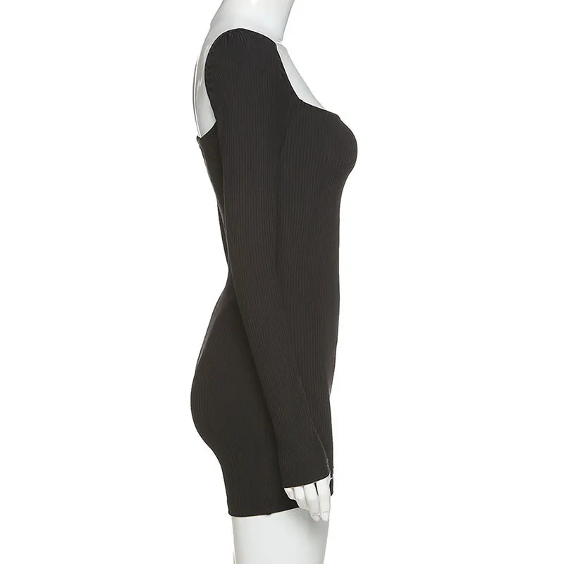 Спортивная одежда с квадратным воротником, вязаный ребристый комбинезон с этикеткой на удачу, летний сексуальный облегающий клубный комбинезон с длинным рукавом для фитнеса, женский комбинезон, наряд