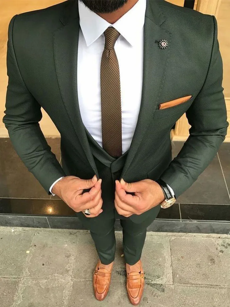 NameANNIEBRITNEY Dark Green 3 Piece Slim Men Formal Suit