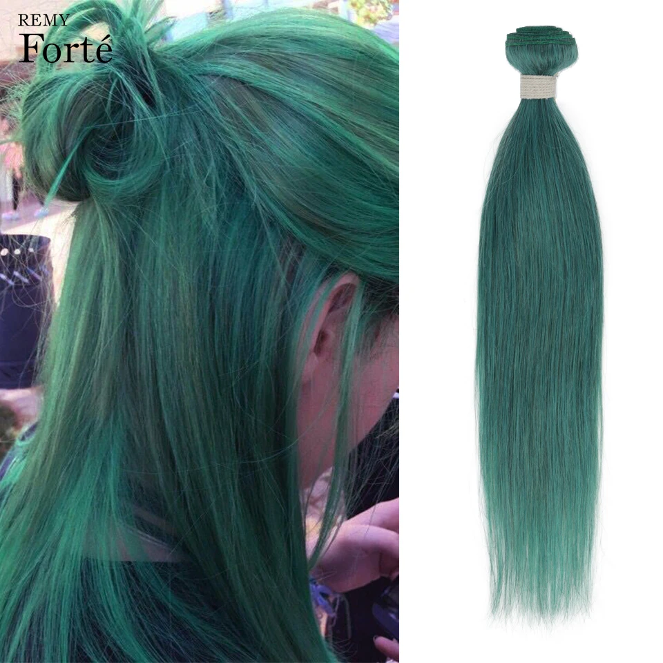 Remy Форте человеческие волосы пряди изумрудно-зеленый бразильские волосы, волнистые пряди прямые волосы virgin (один пряди для наращивания