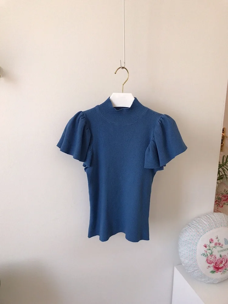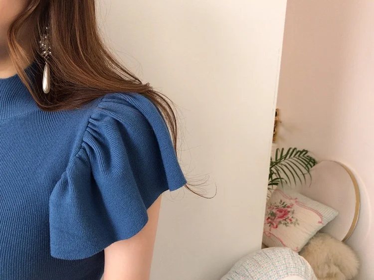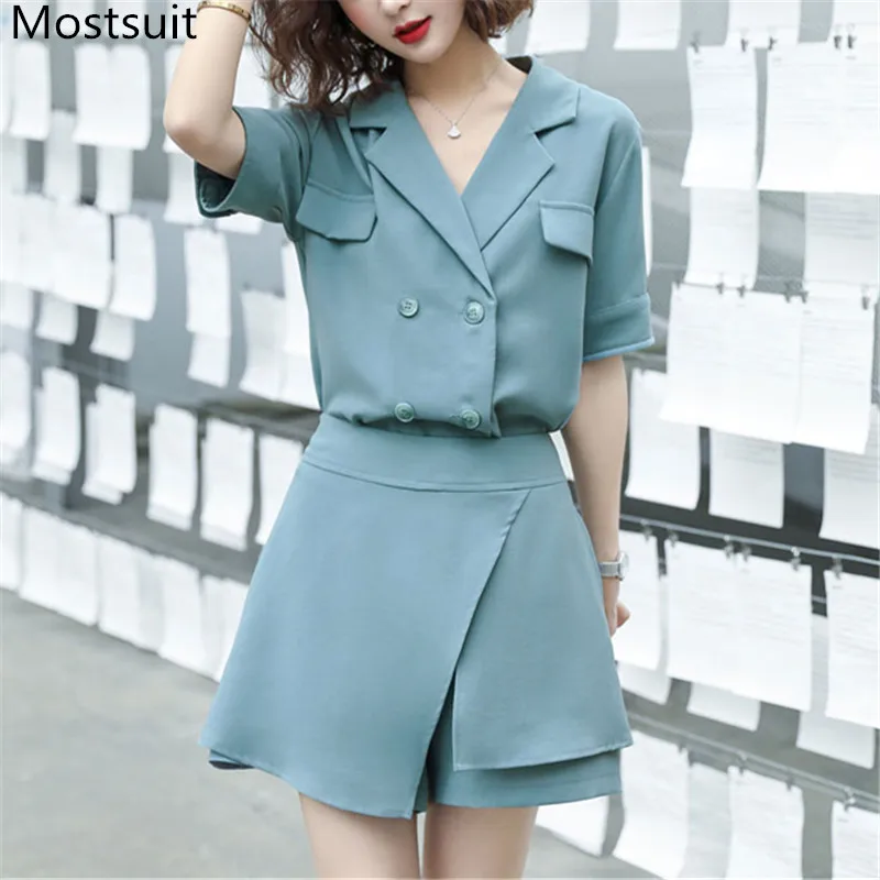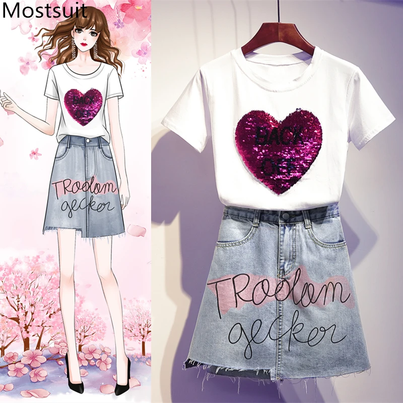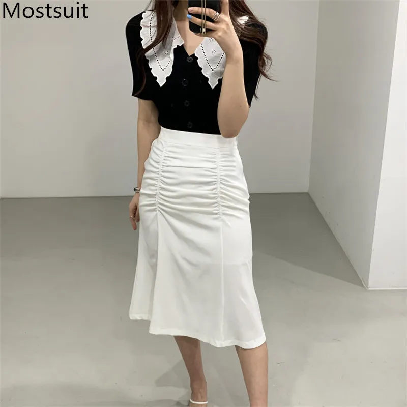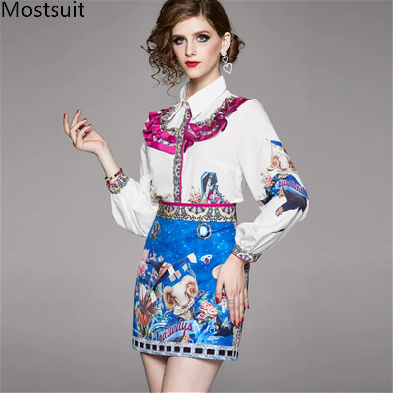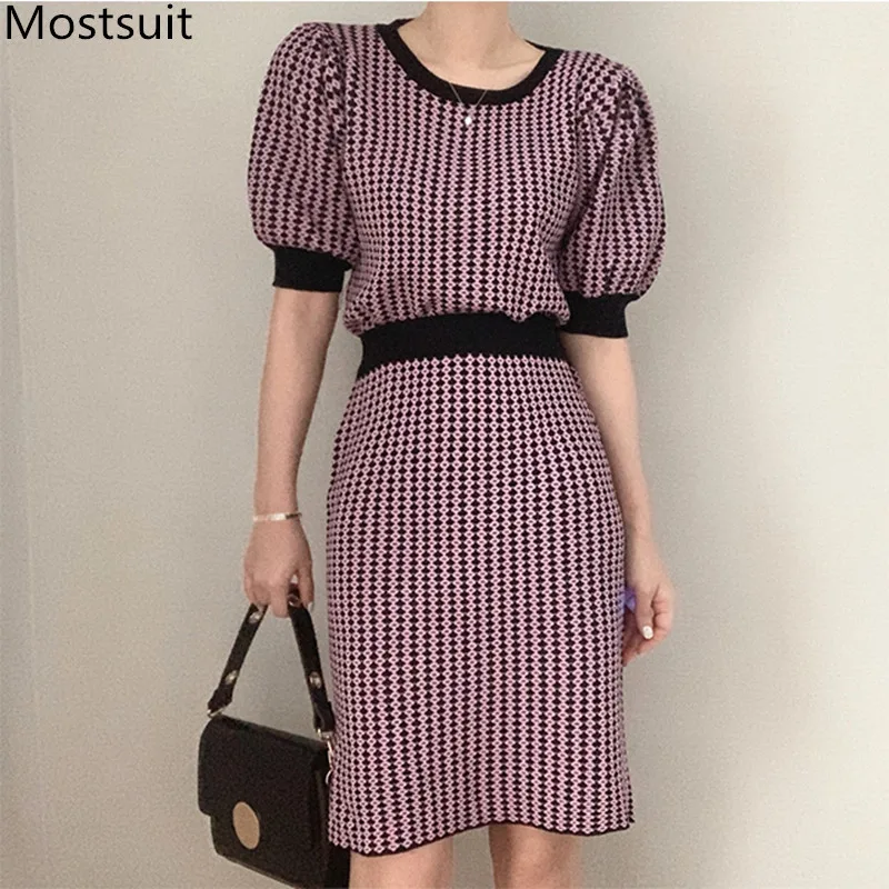 Комплект с юбкой Женский трикотажный из двух предметов, модный винтажный элегантный костюм из синего трикотажного топа и длинной юбки с принтом на резинке, в Корейском стиле, лето 2020