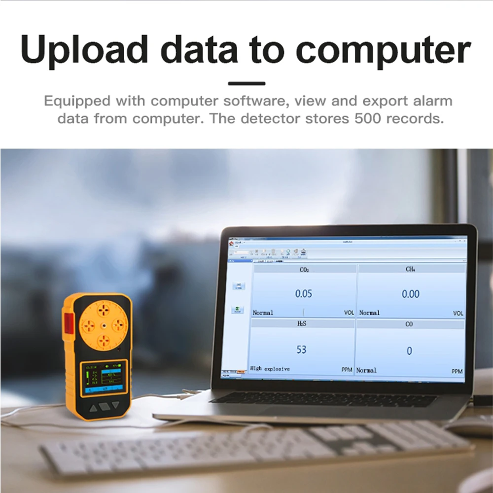 Портативный многофункциональный детектор газа 4 в 1 EX H2S CO O2 четыре способа сигнализации подключение к компьютеру многофункциональный детектор сигнализации