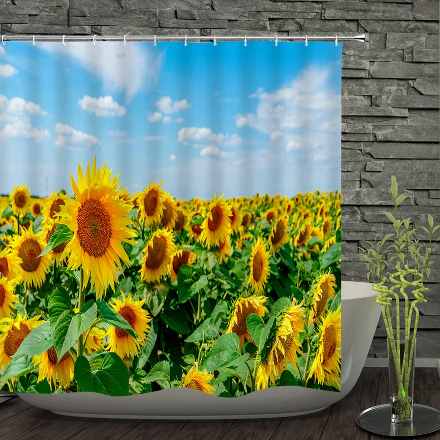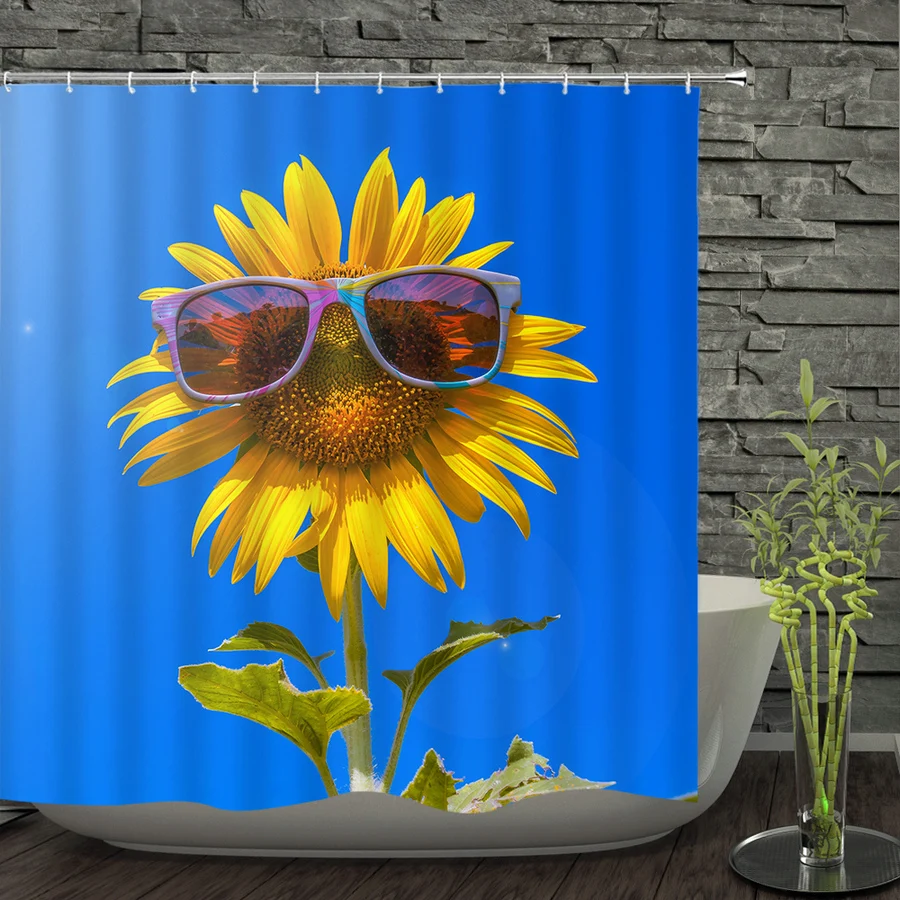 Водонепроницаемая штора для душа с рисунком подсолнухов, занавеска для ванны с 3d принтом, с крючками, для ванной из полиэстера, домашняя занавеска для ванны