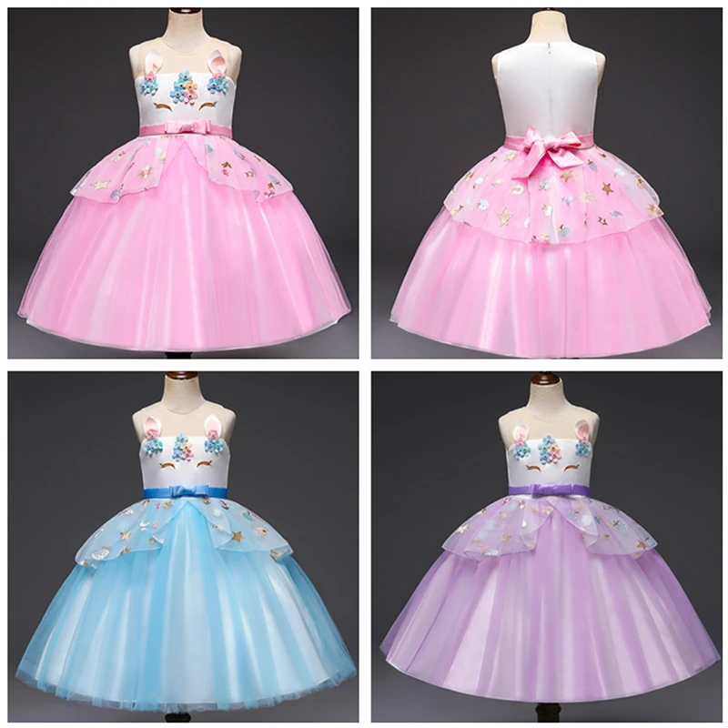 Платье с единорогом для девочек, радужные платья принцессы с пачкой, детское праздничное платье, Великолепное платье с открытой спиной, тематический костюм с единорогом для косплея