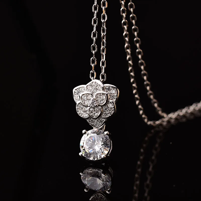 Круглый бриллиант, 1 карат, 6,5 мм, Муассанит, цветок графа, подвеска для ожерелья, ожерелье с графом, классические украшения
