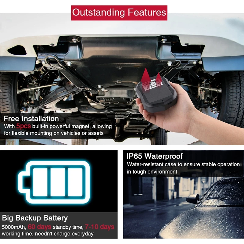 1. GPS-трекер-удобное устройство слежения GPS, простое в использовании. 2. Размеры: 90x72x22 мм 3. Вес: 168 г 4. Сеть: WCDMA/GSM/GPRS 5. Ремешок: GSM: 850/900/1800 / 1900 МГц WCDMA: 1900/850/2100/900 МГц 6. Чувствительность GPS: -159 дБм 7. Точность положения: 5 метров 8. Вход для зарядки: DC5V 1.0A 9. Время первой фиксации: Холодное состояние: 45 с, теплое состояние: 35 с, горячее состояние: 1 с